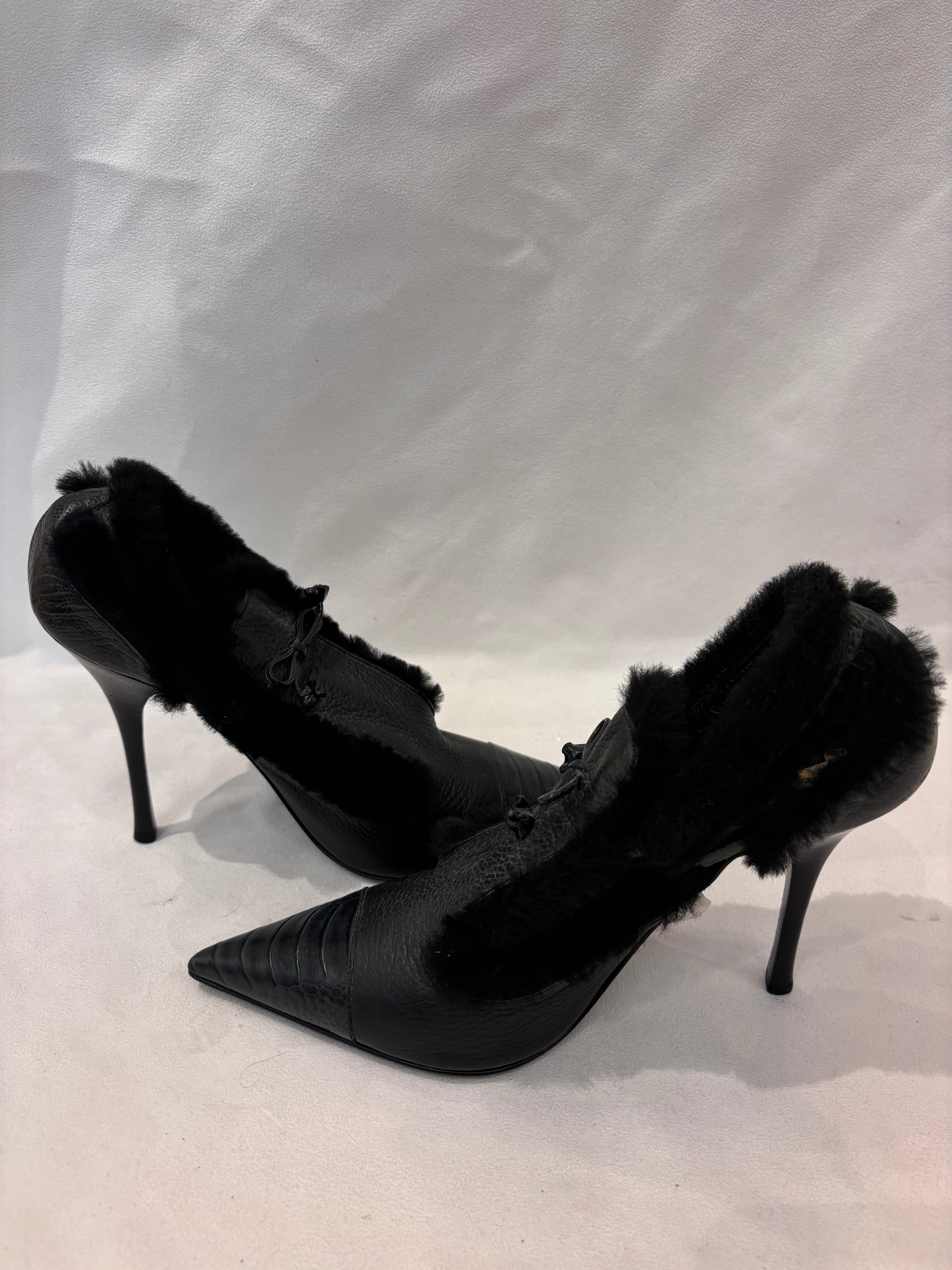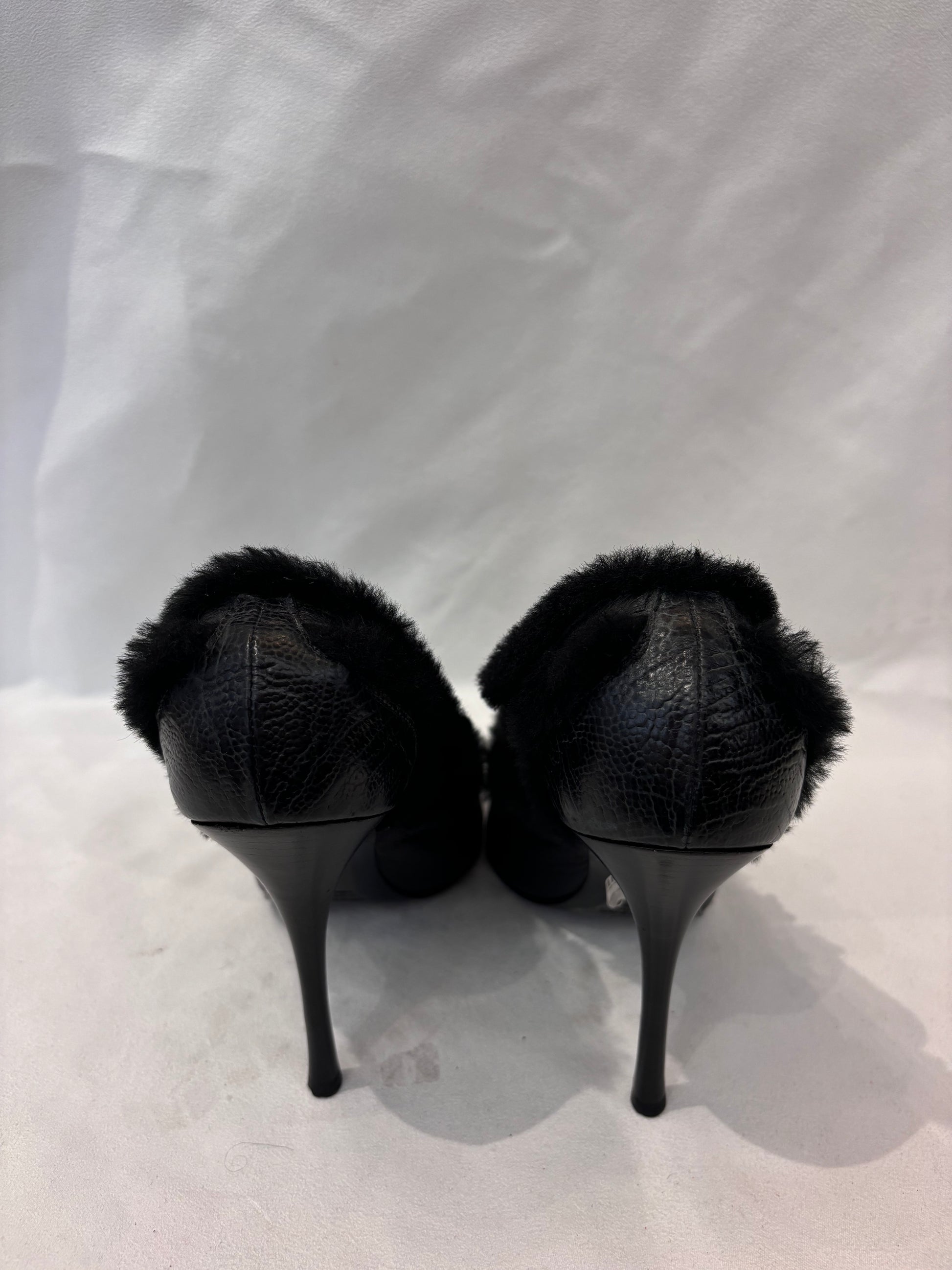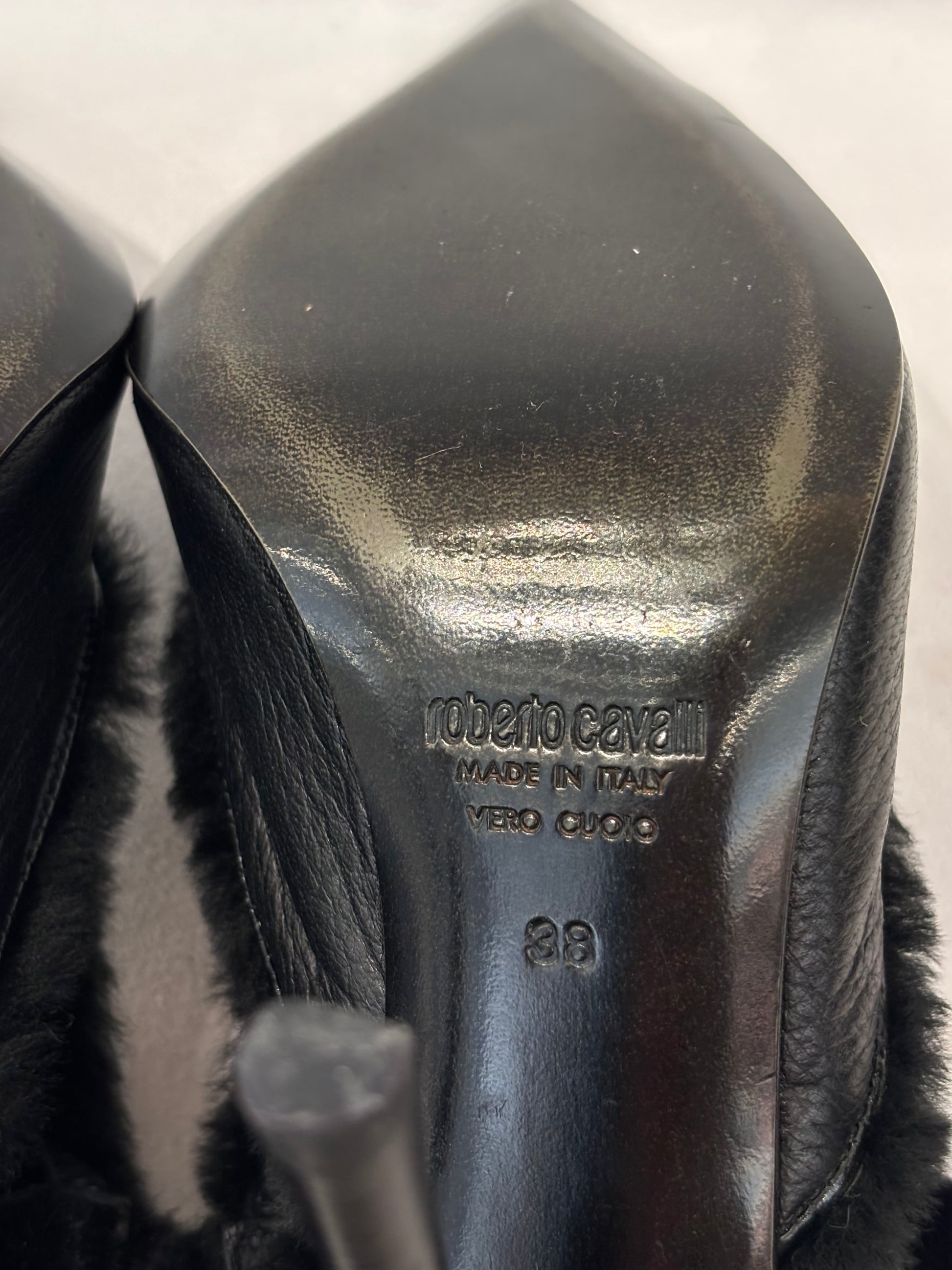 Roberto Cavalli Black Pointy Toe Pump with Fur Trim Size 38