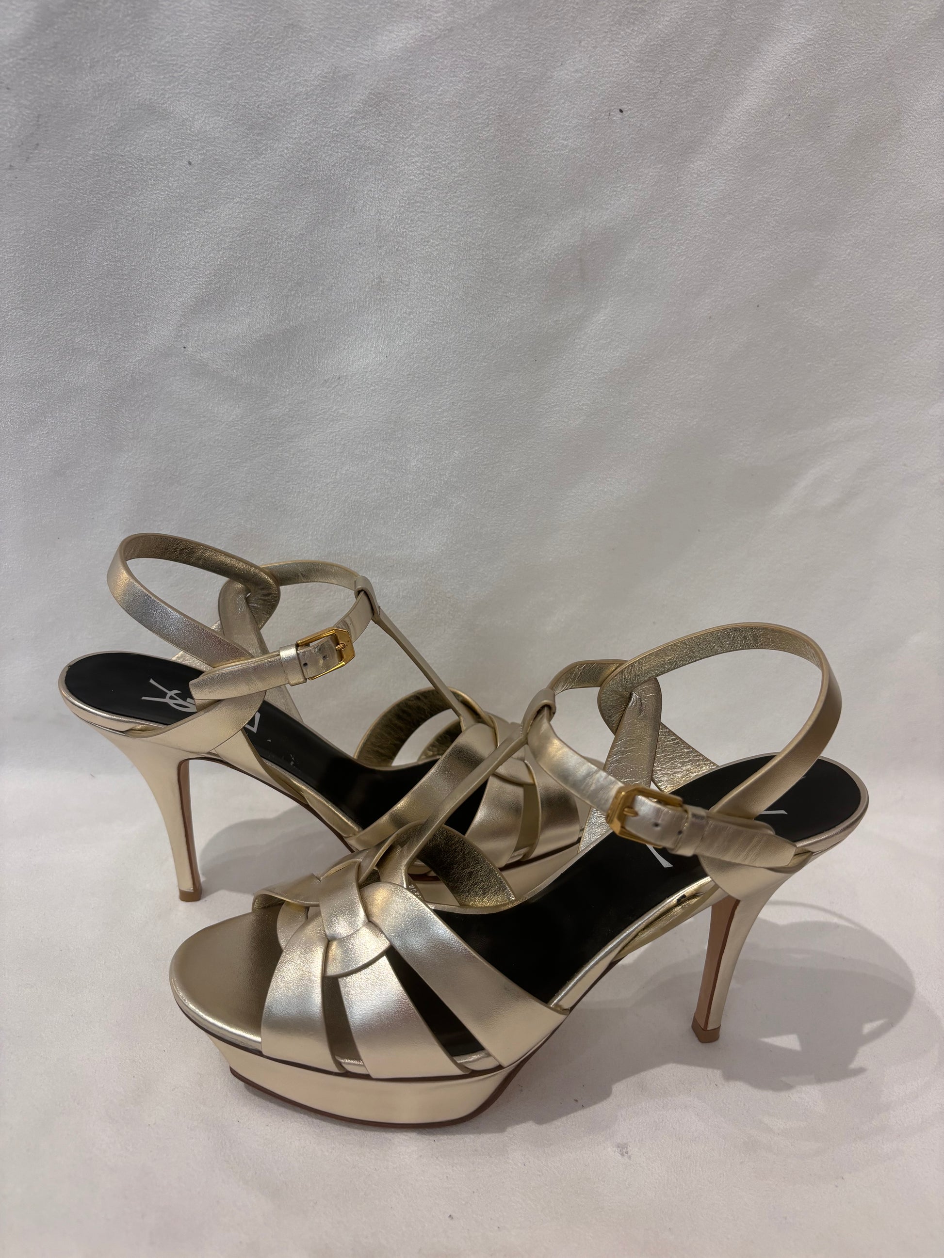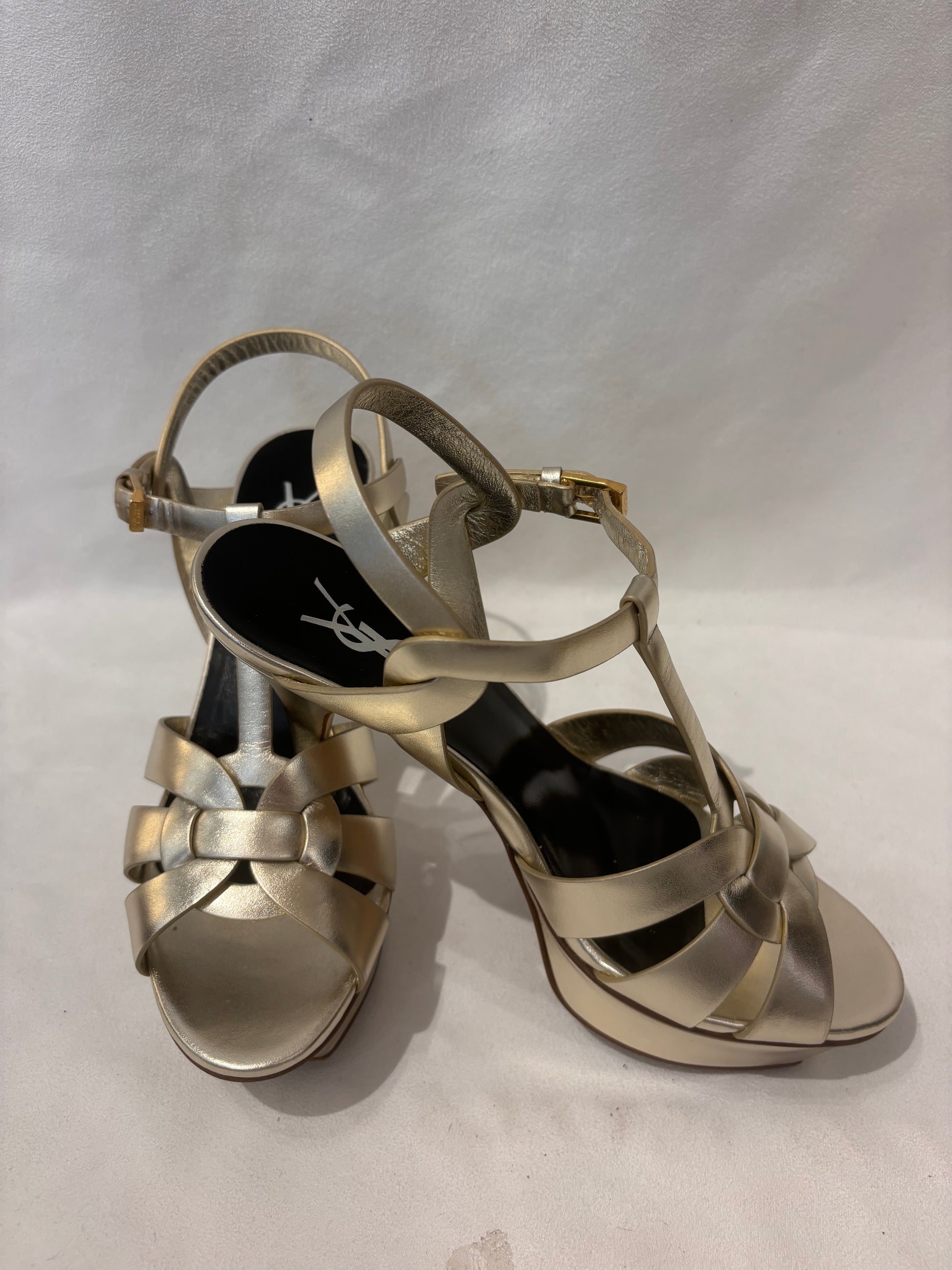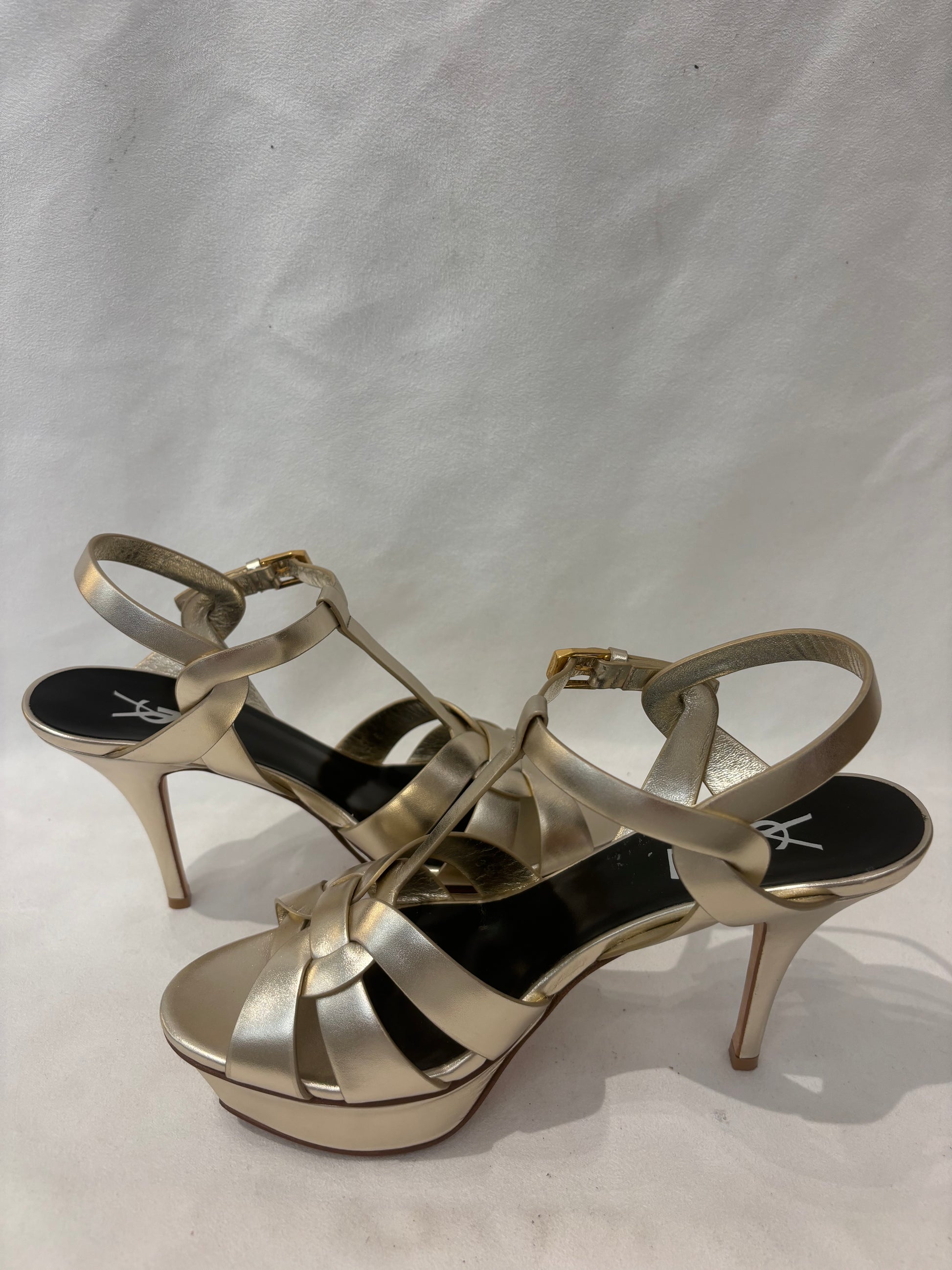 Saint Laurent Gold Platform Tribute Sandals Size 39