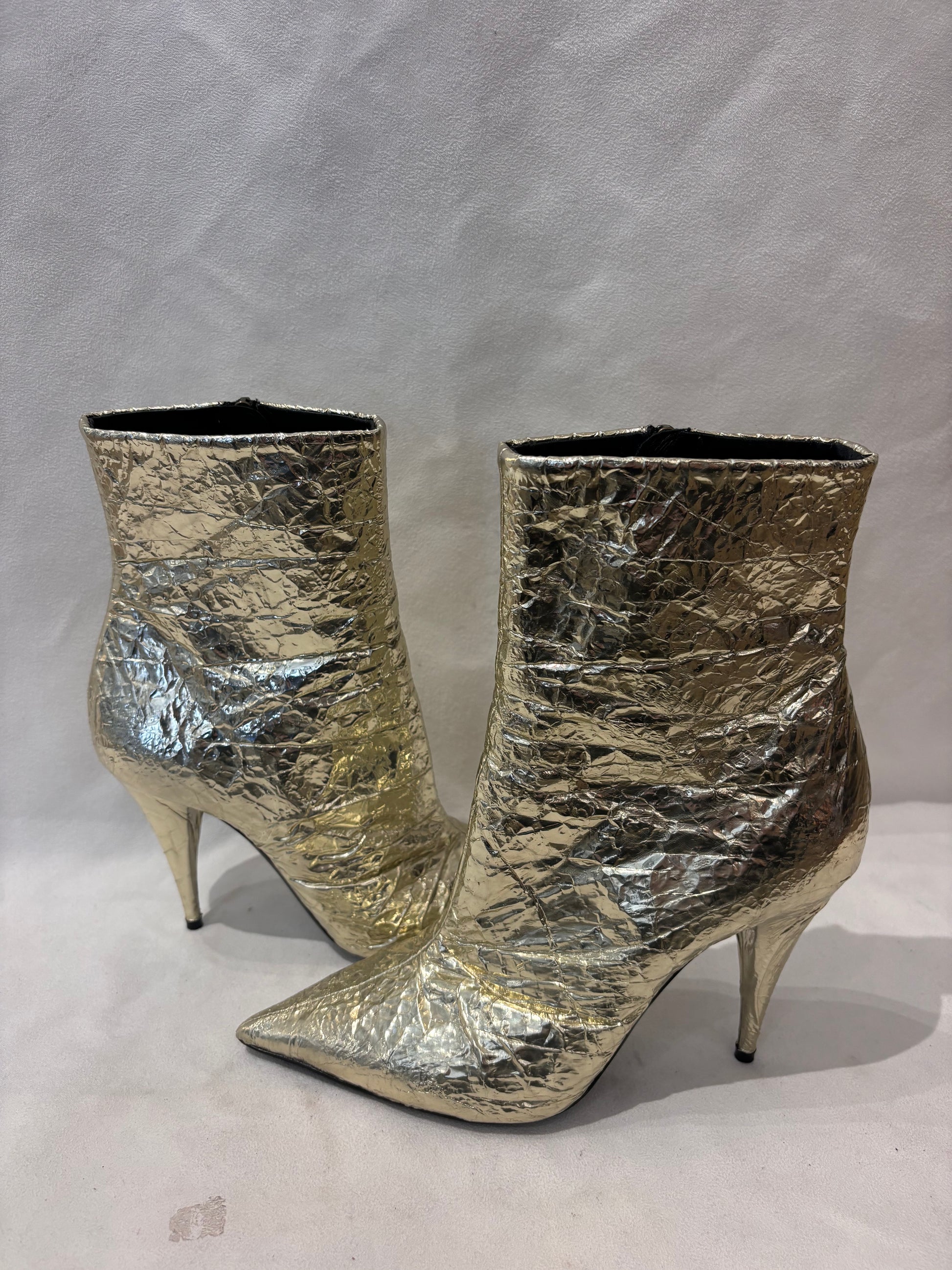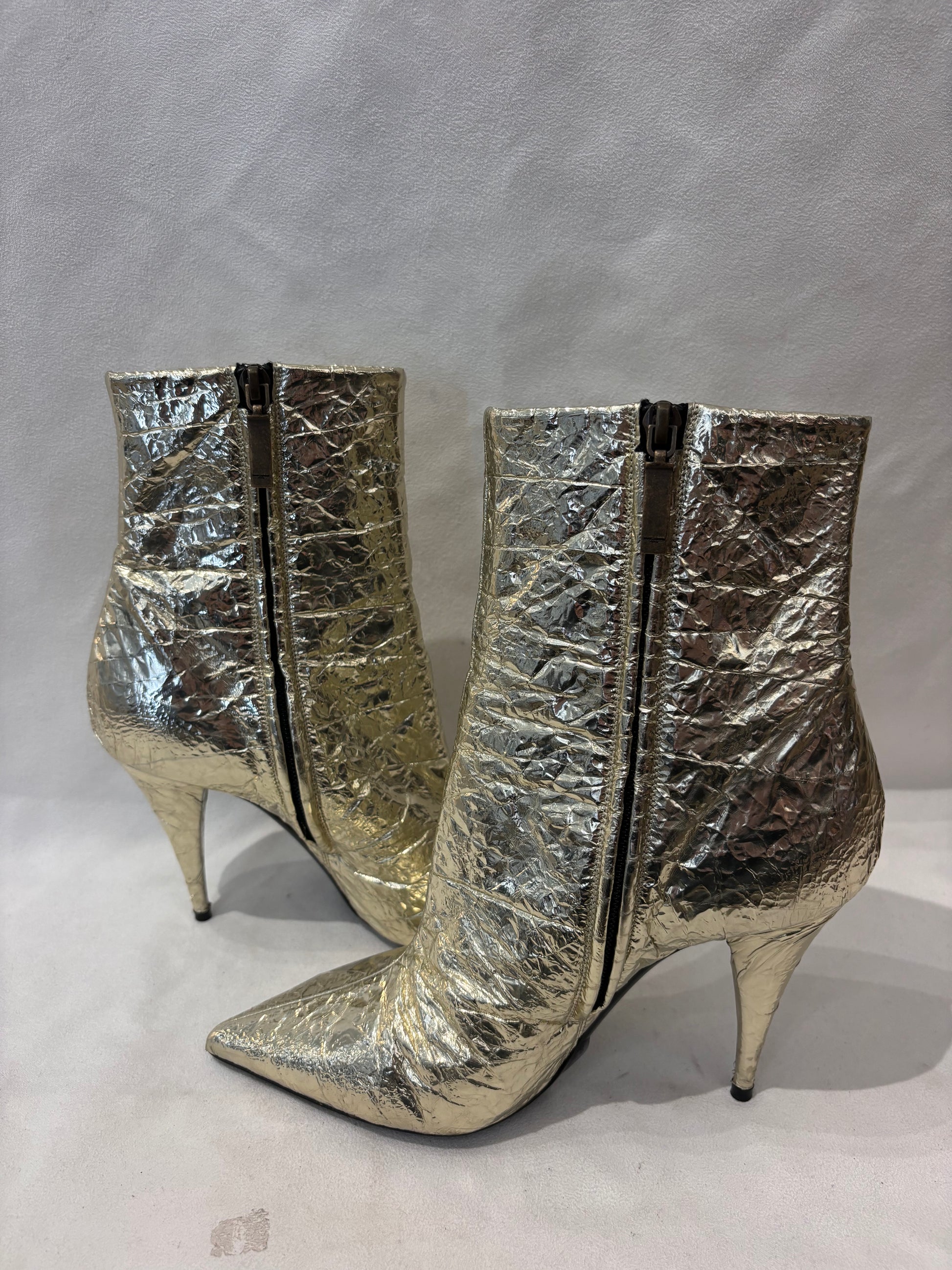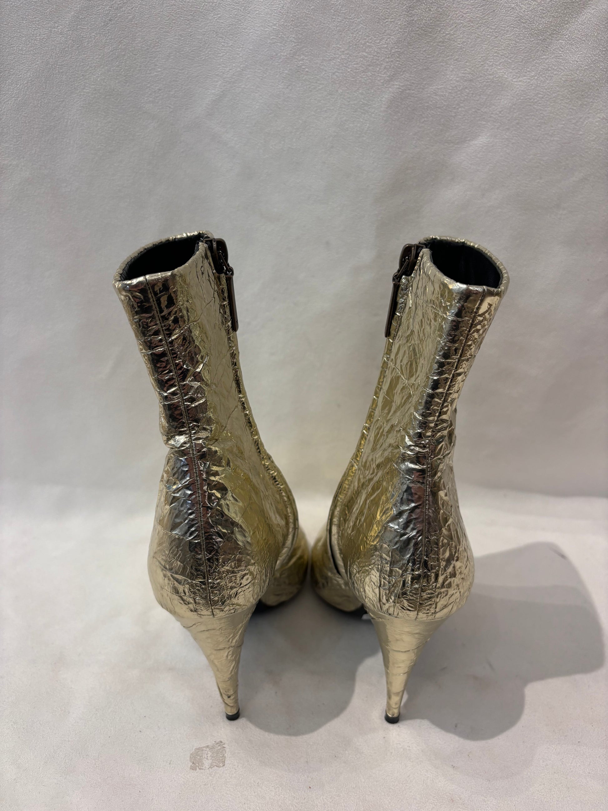 Saint Laurent Gold Crackle Effect High Heel Booties Size 37.5