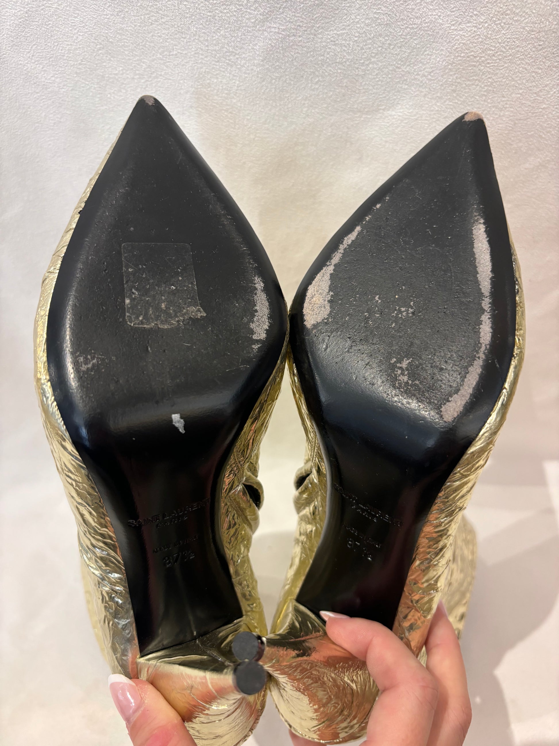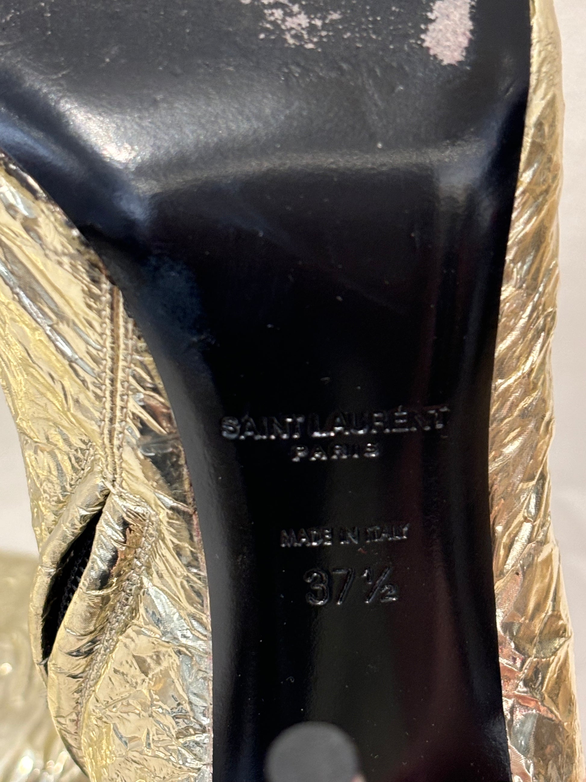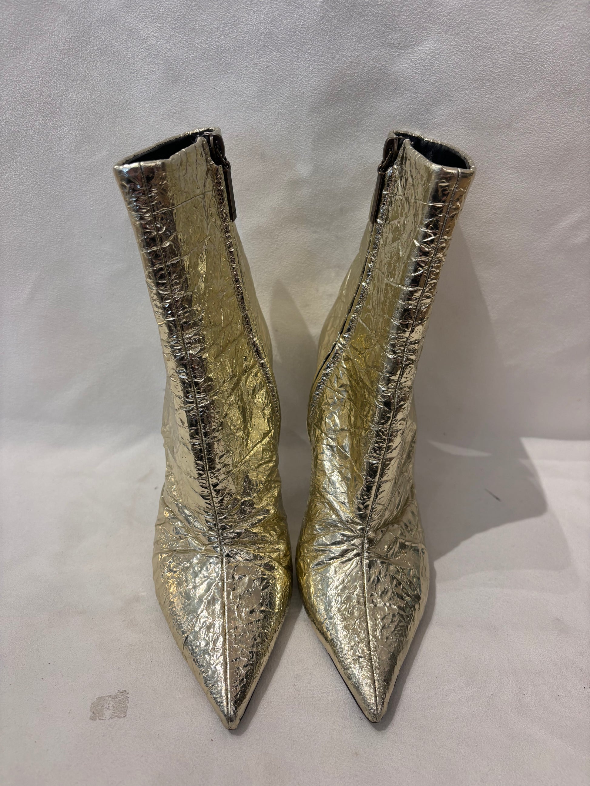 Saint Laurent Gold Crackle Effect High Heel Booties Size 37.5