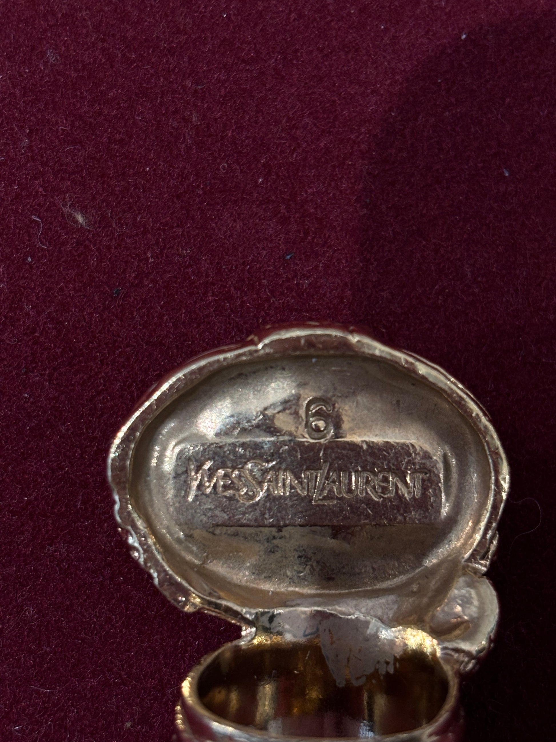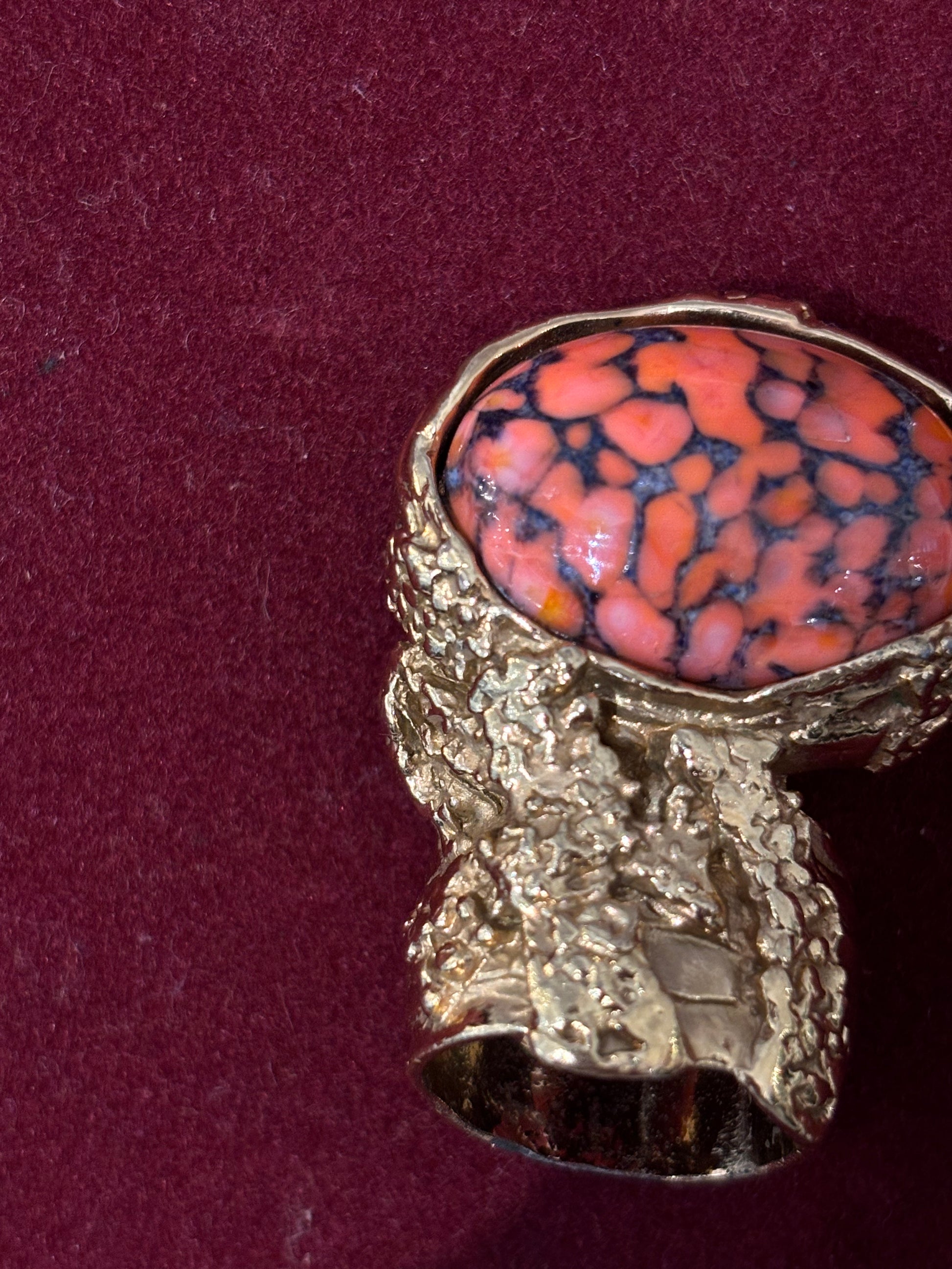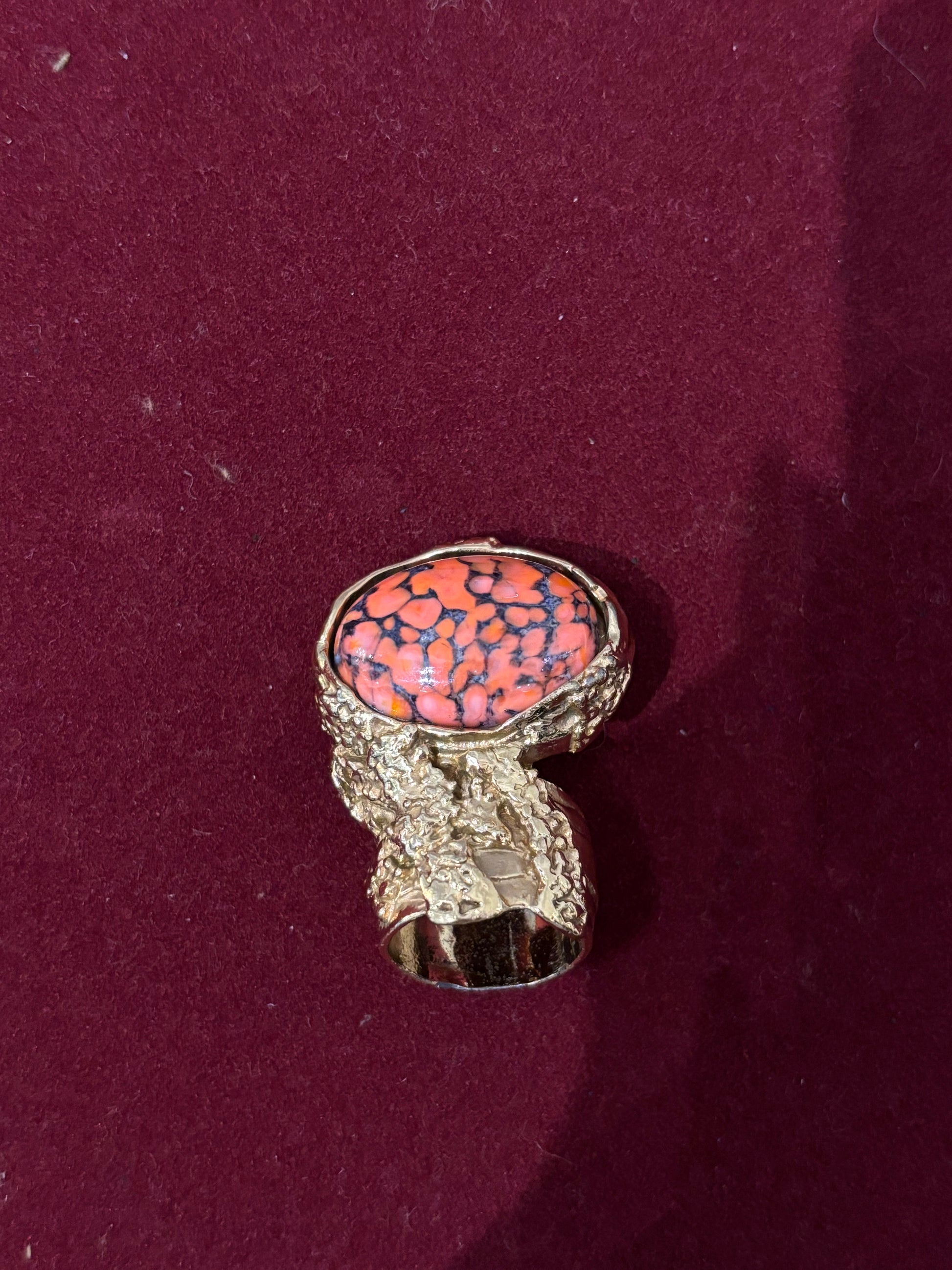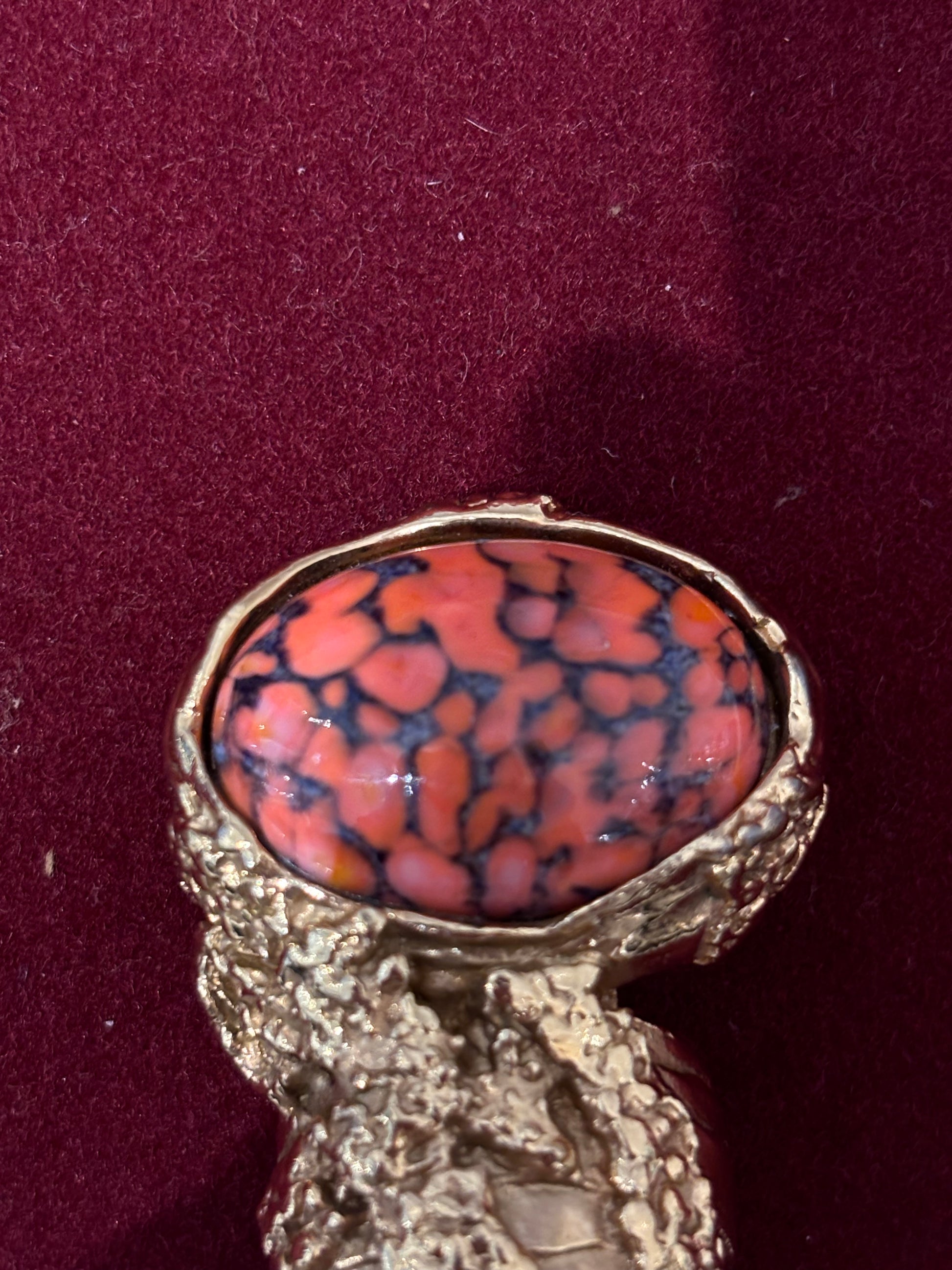 Saint Laurent Coral Glass Cabochan Cocktail Ring Size 6