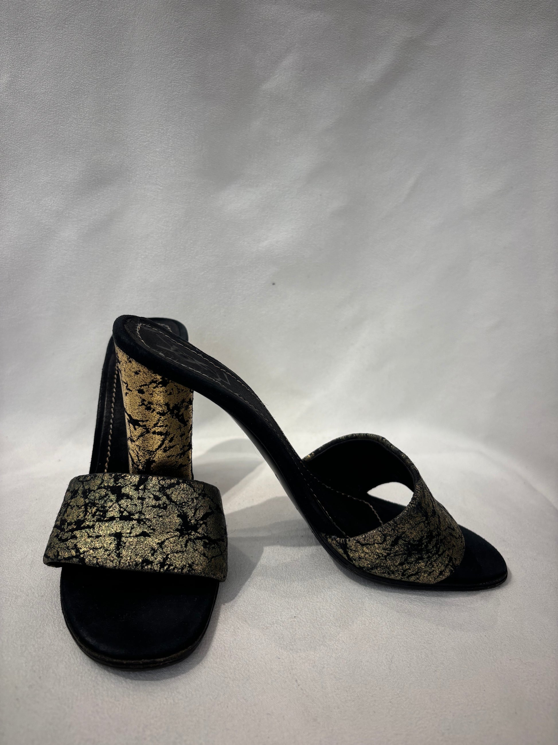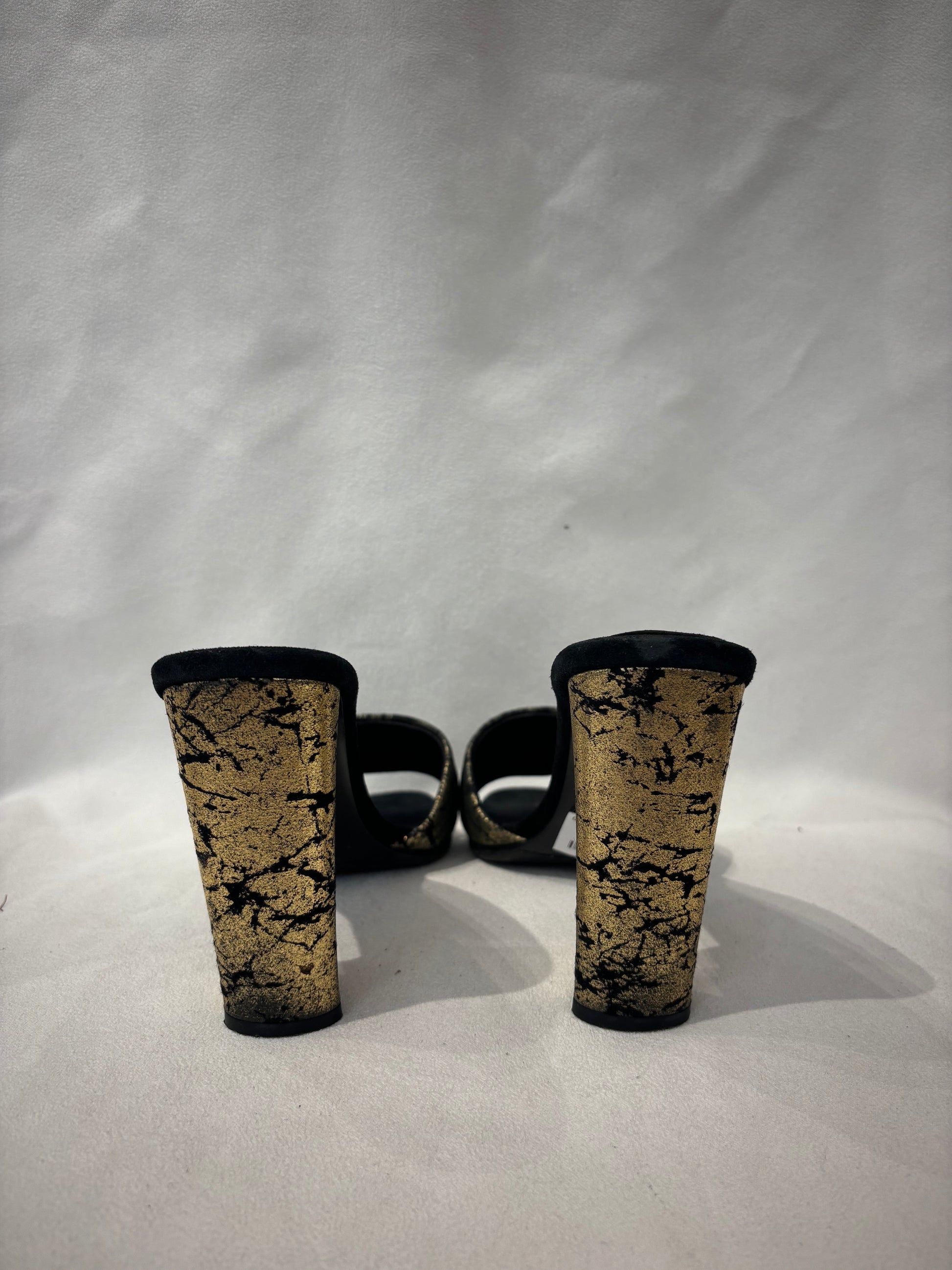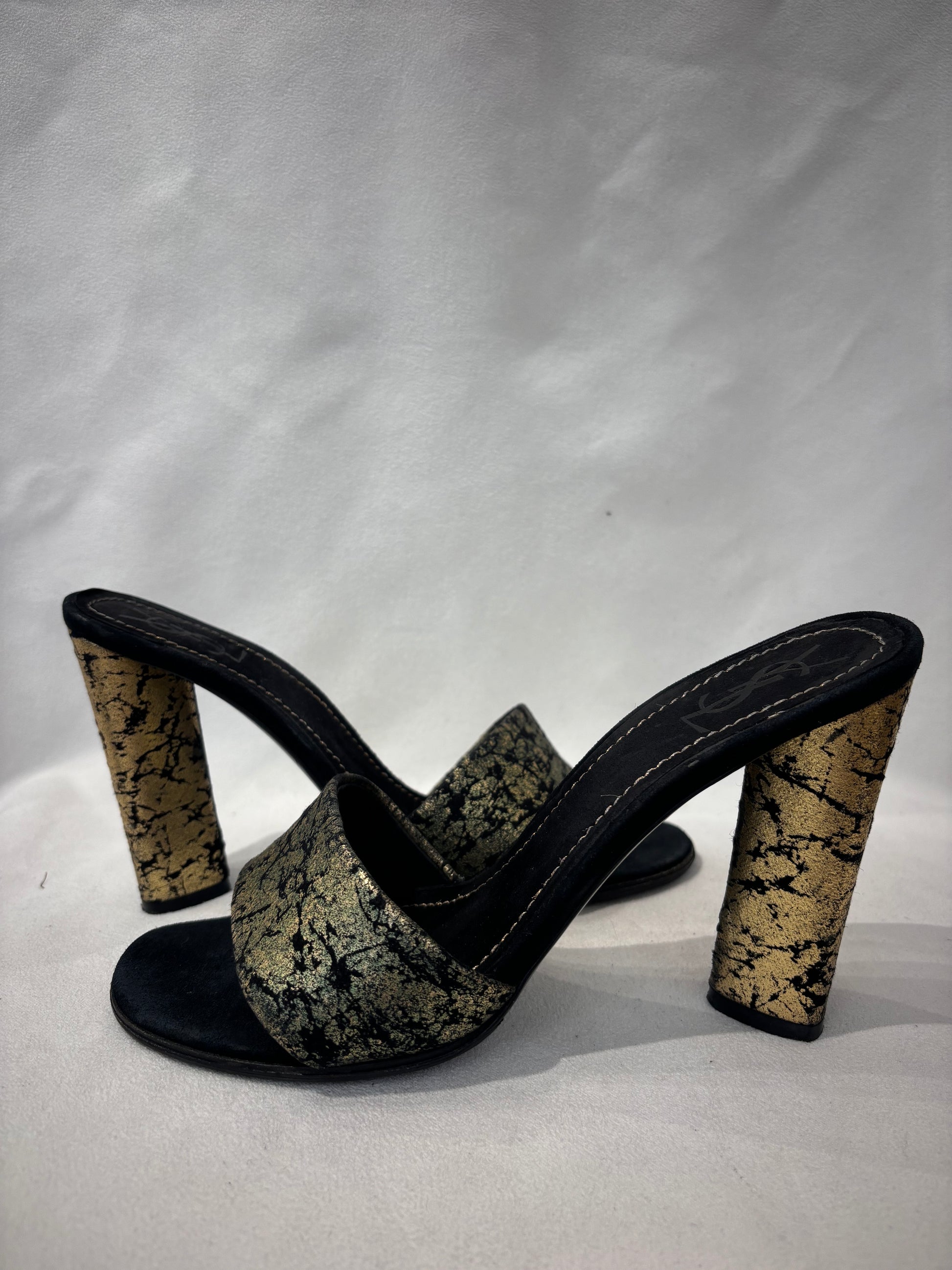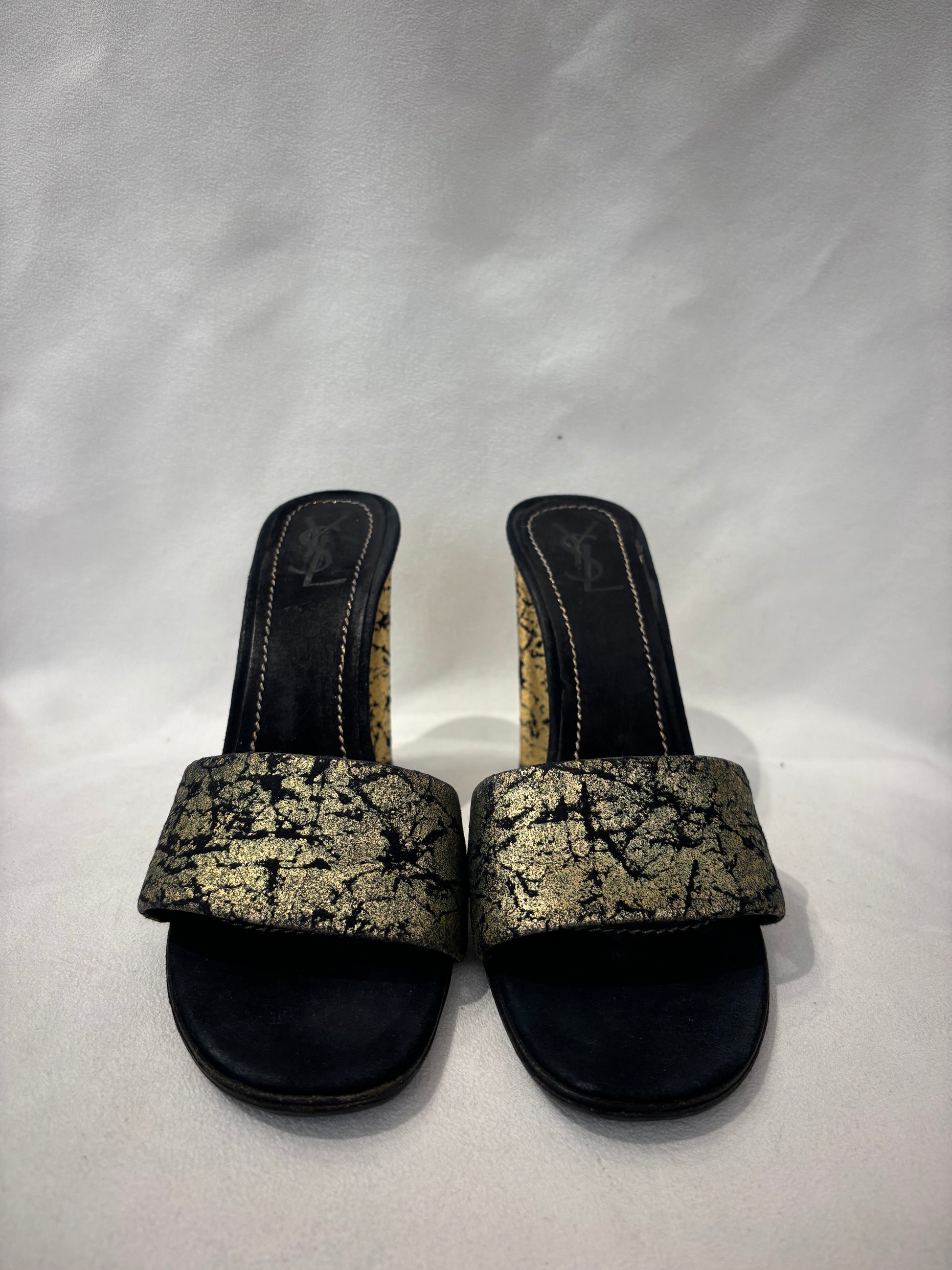 Saint Laurent Black/Gold Slip on Sandals Size 38