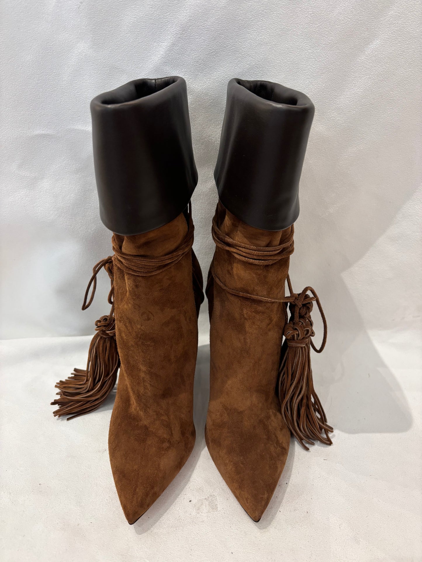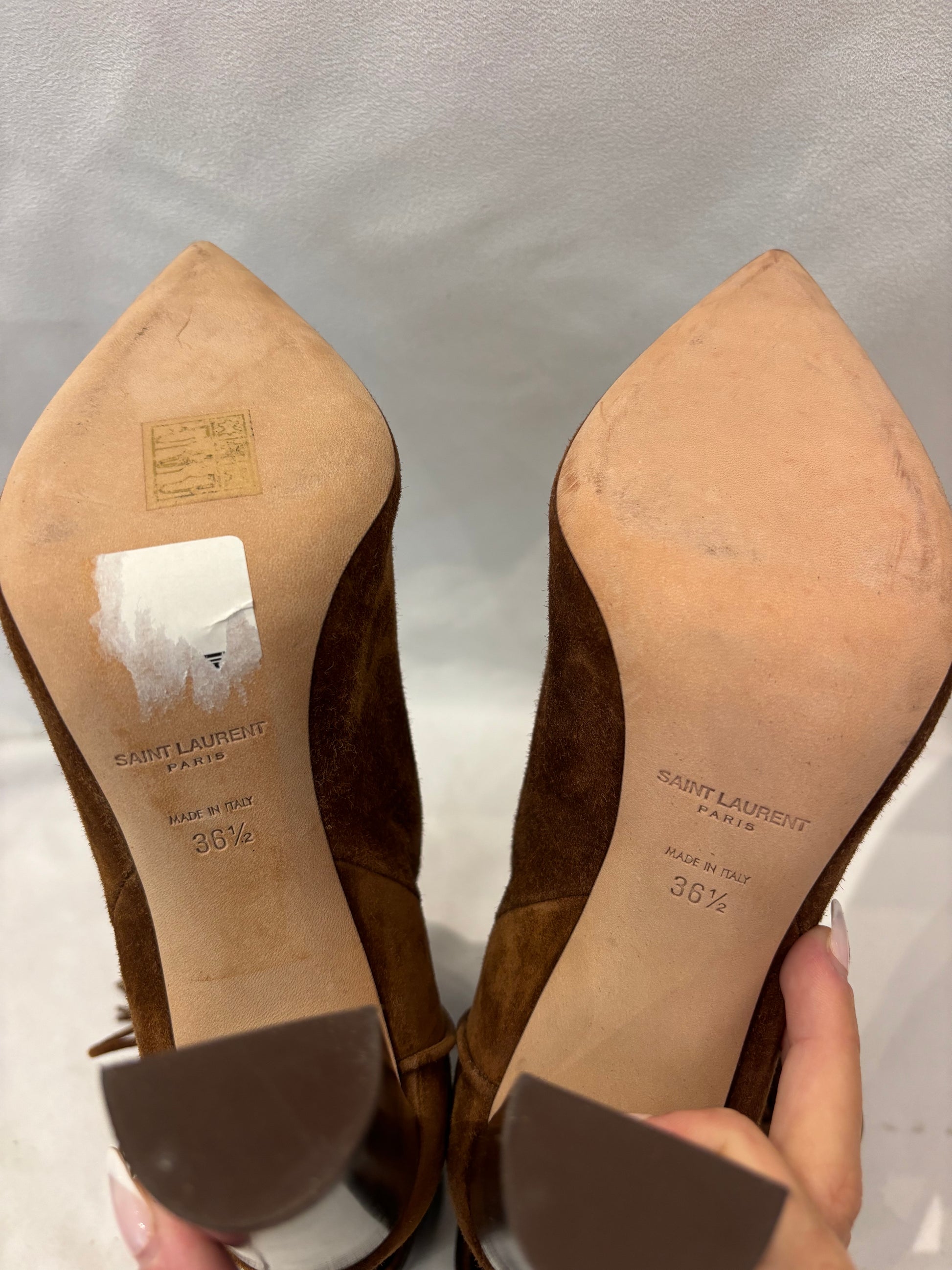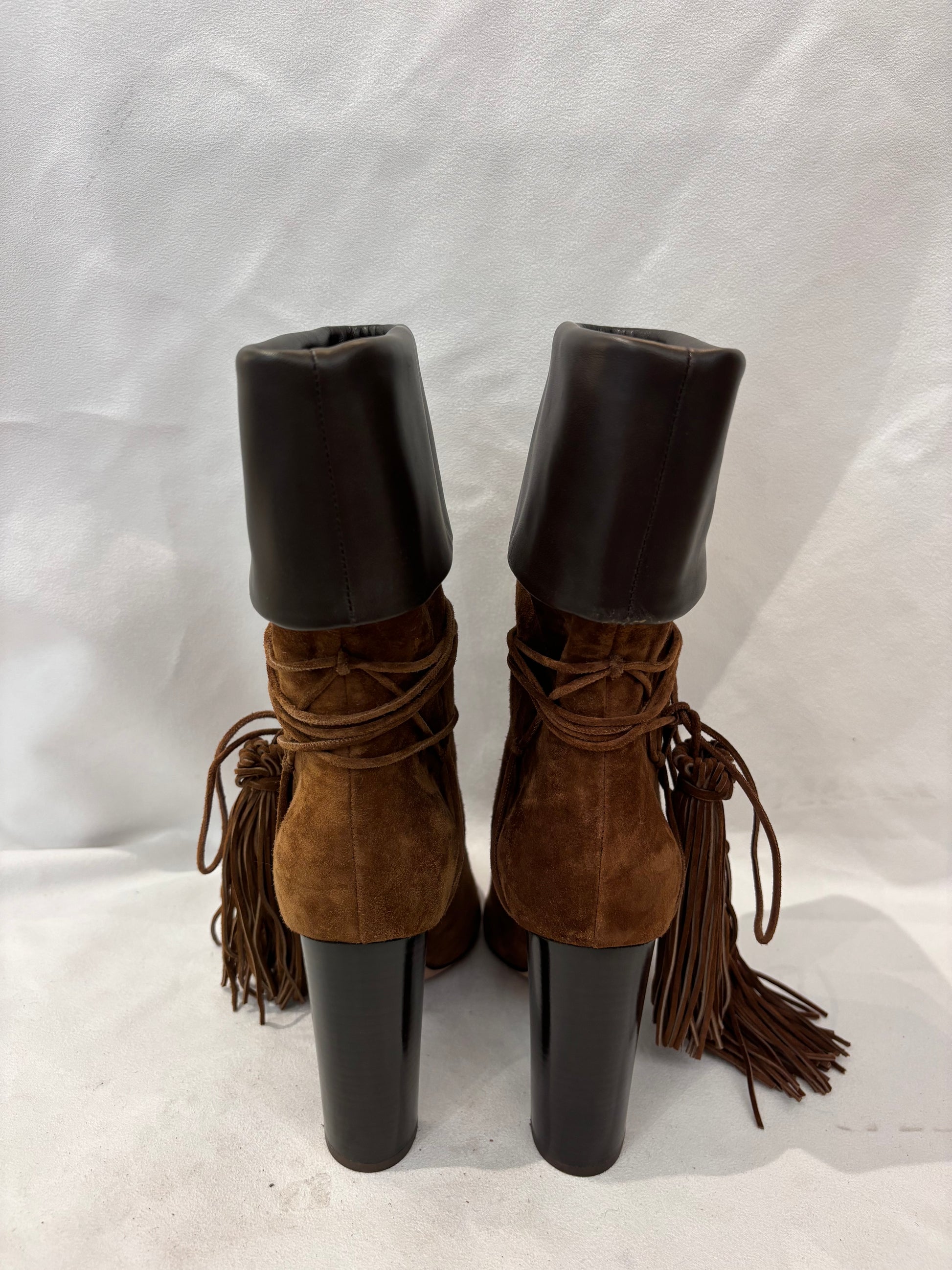 Saint Laurent Brown Suede High Heel Tassel Booties Size 36.5
