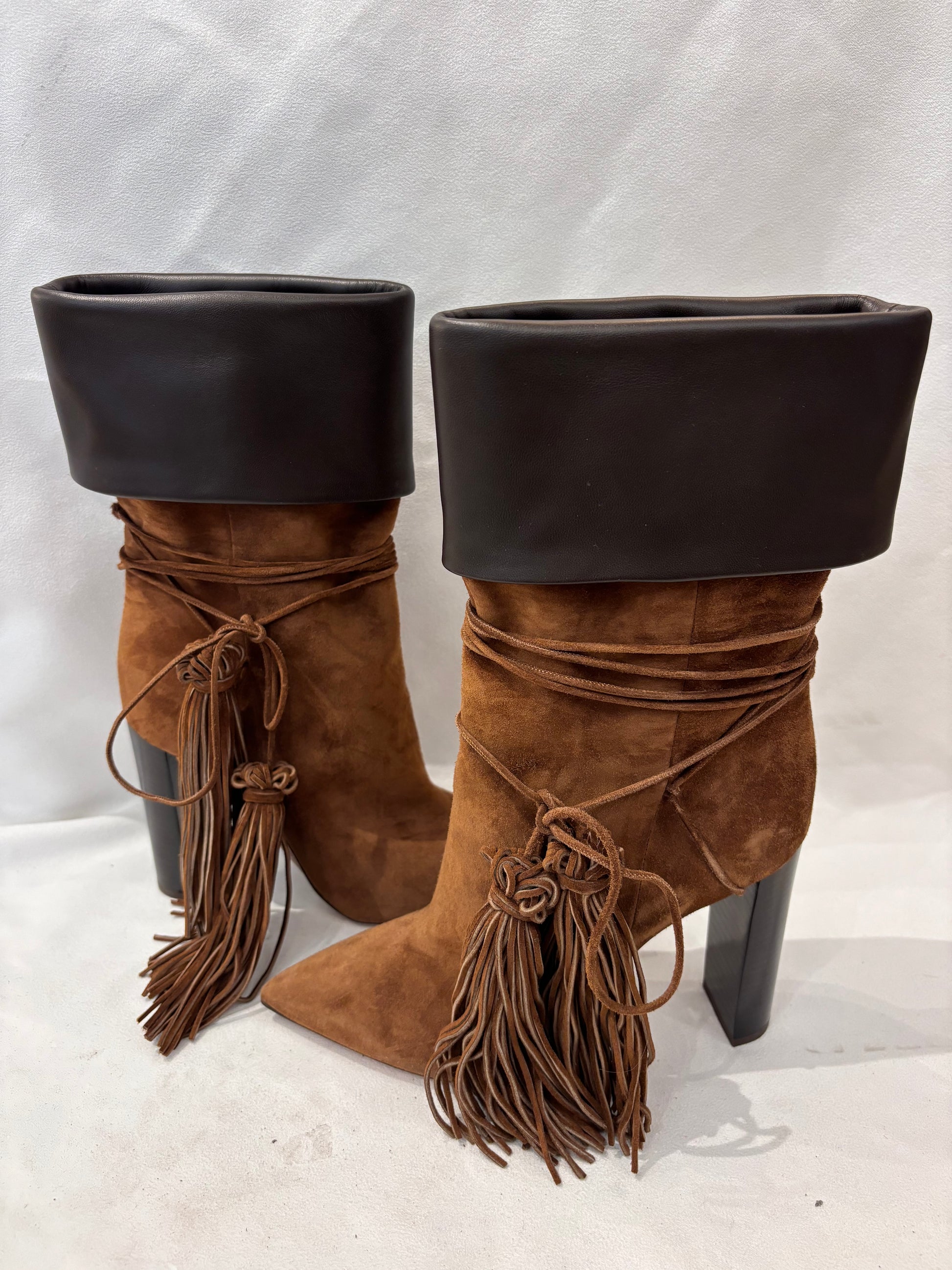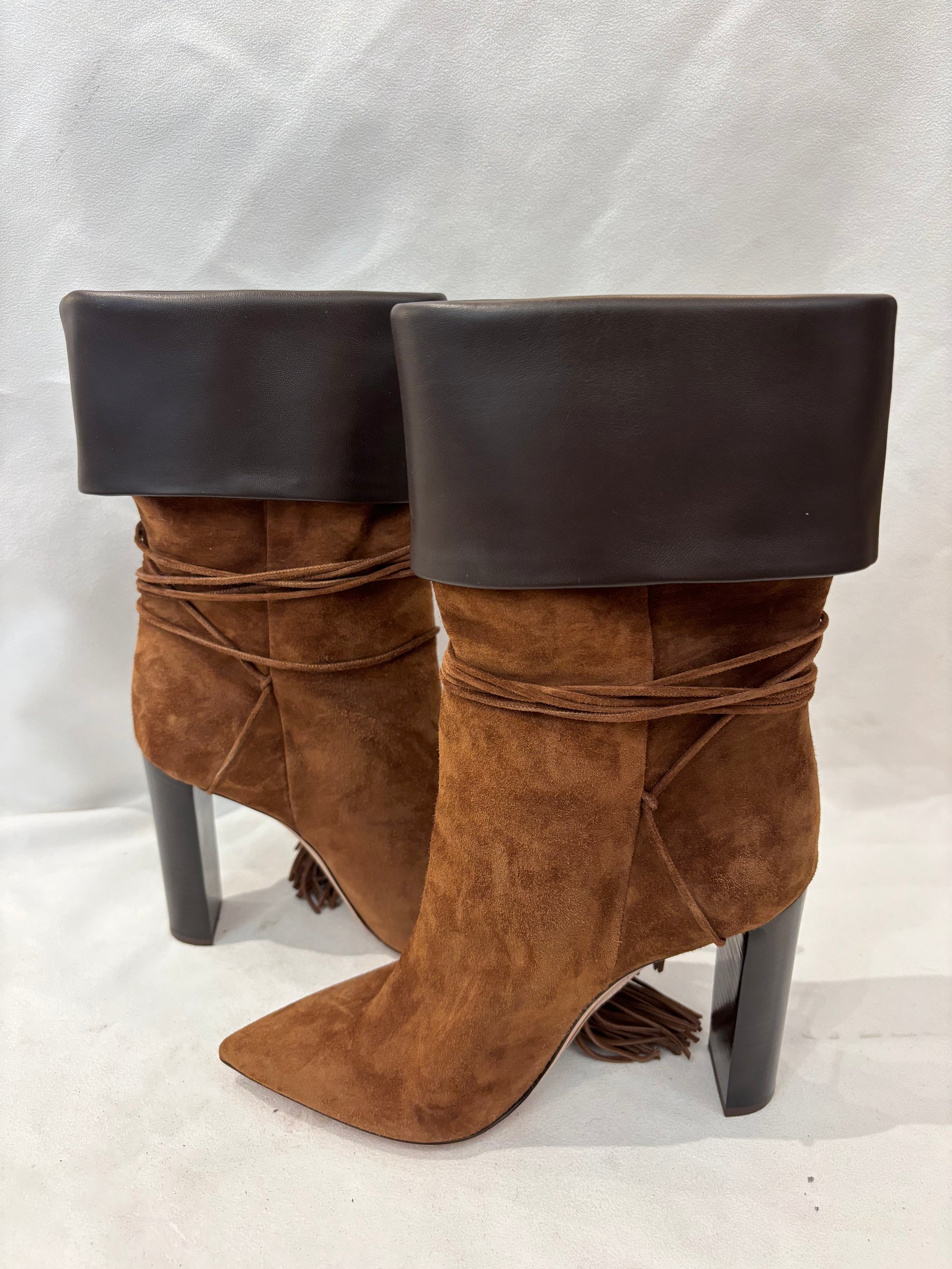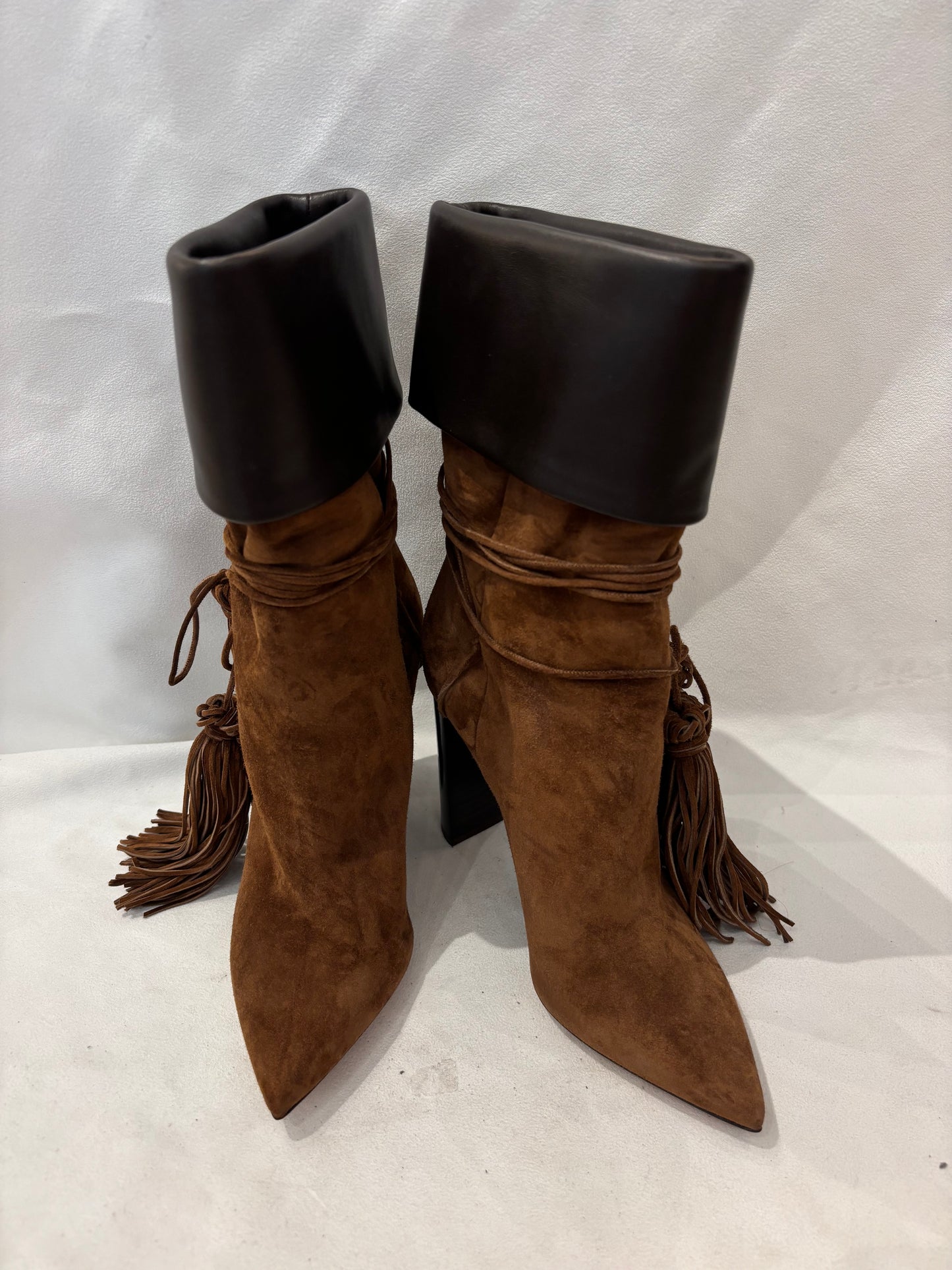 Saint Laurent Brown Suede High Heel Tassel Booties Size 36.5