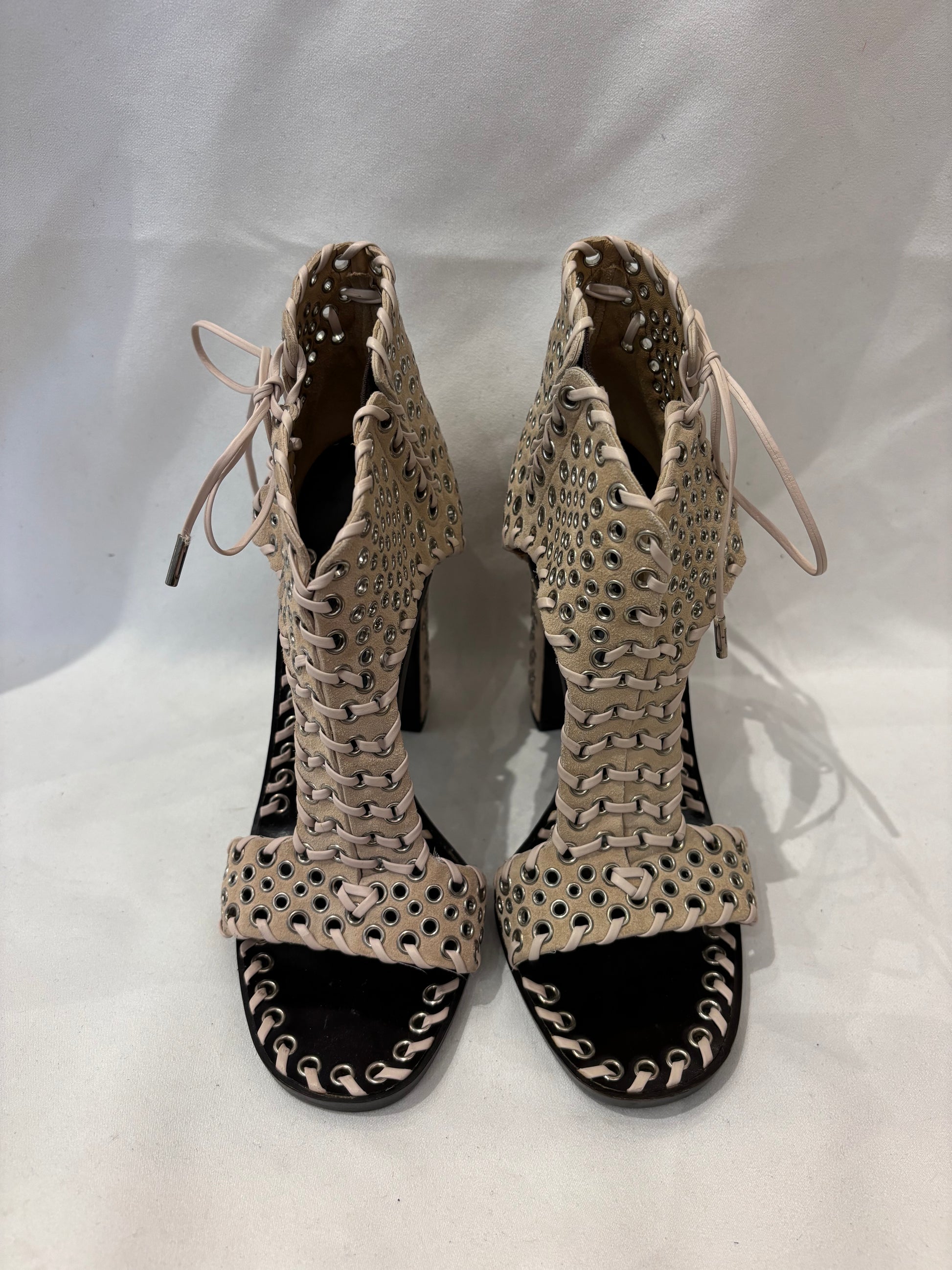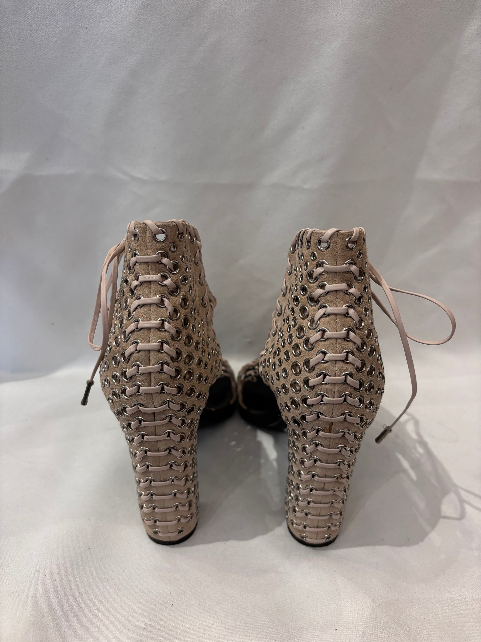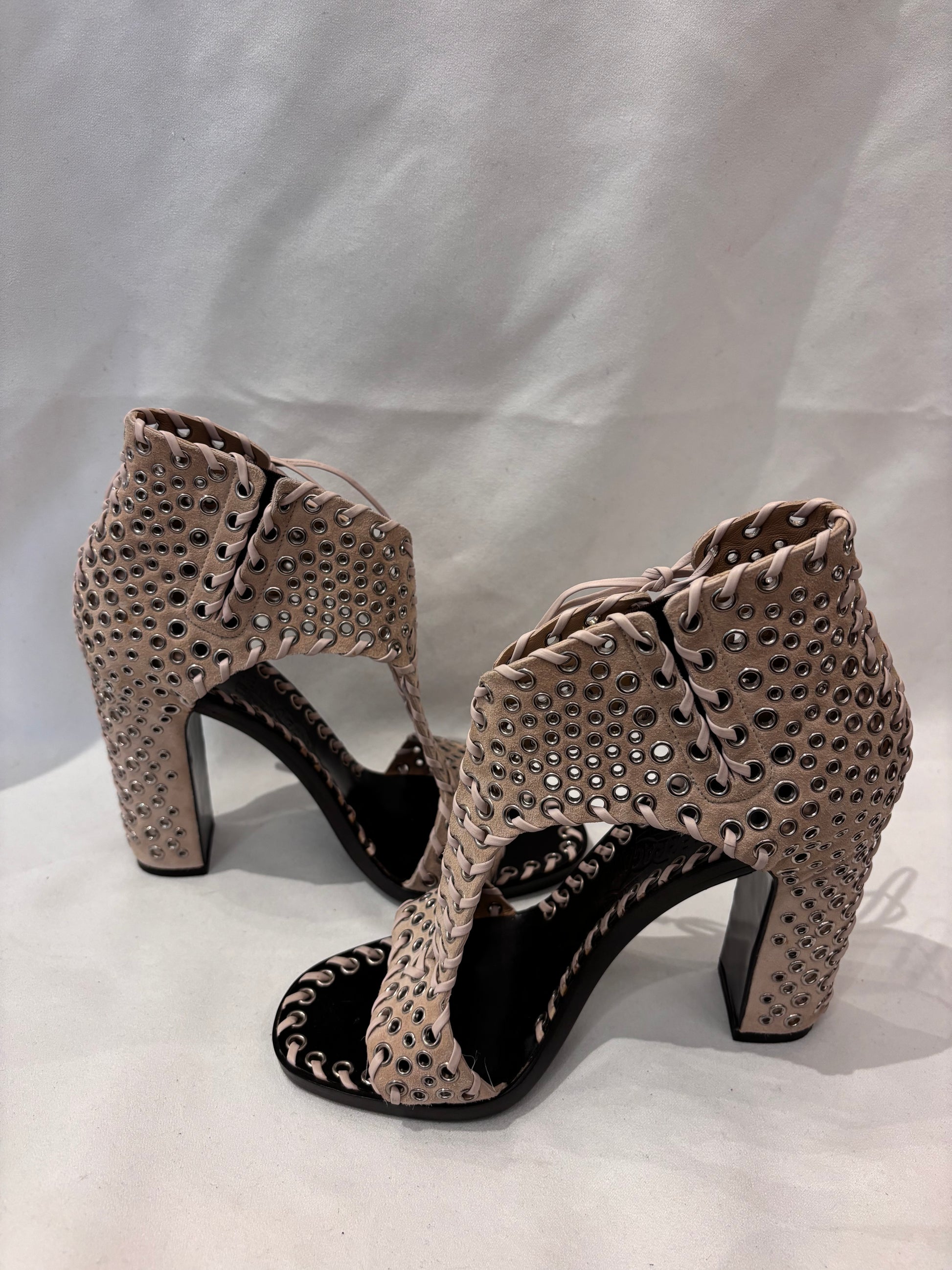 Salvatore Ferragamo Beige Suede Sandals with Silver Grommets Size 37