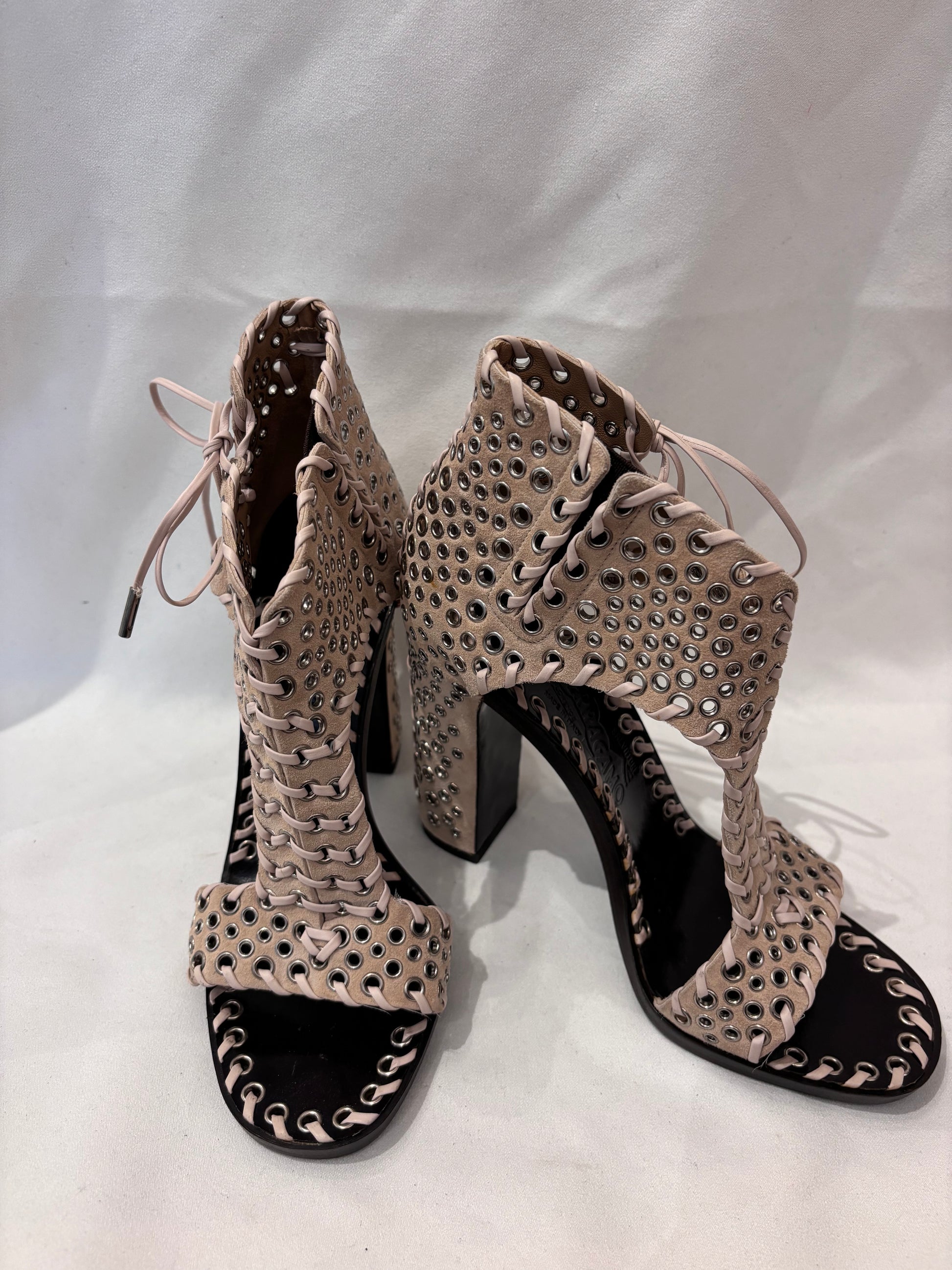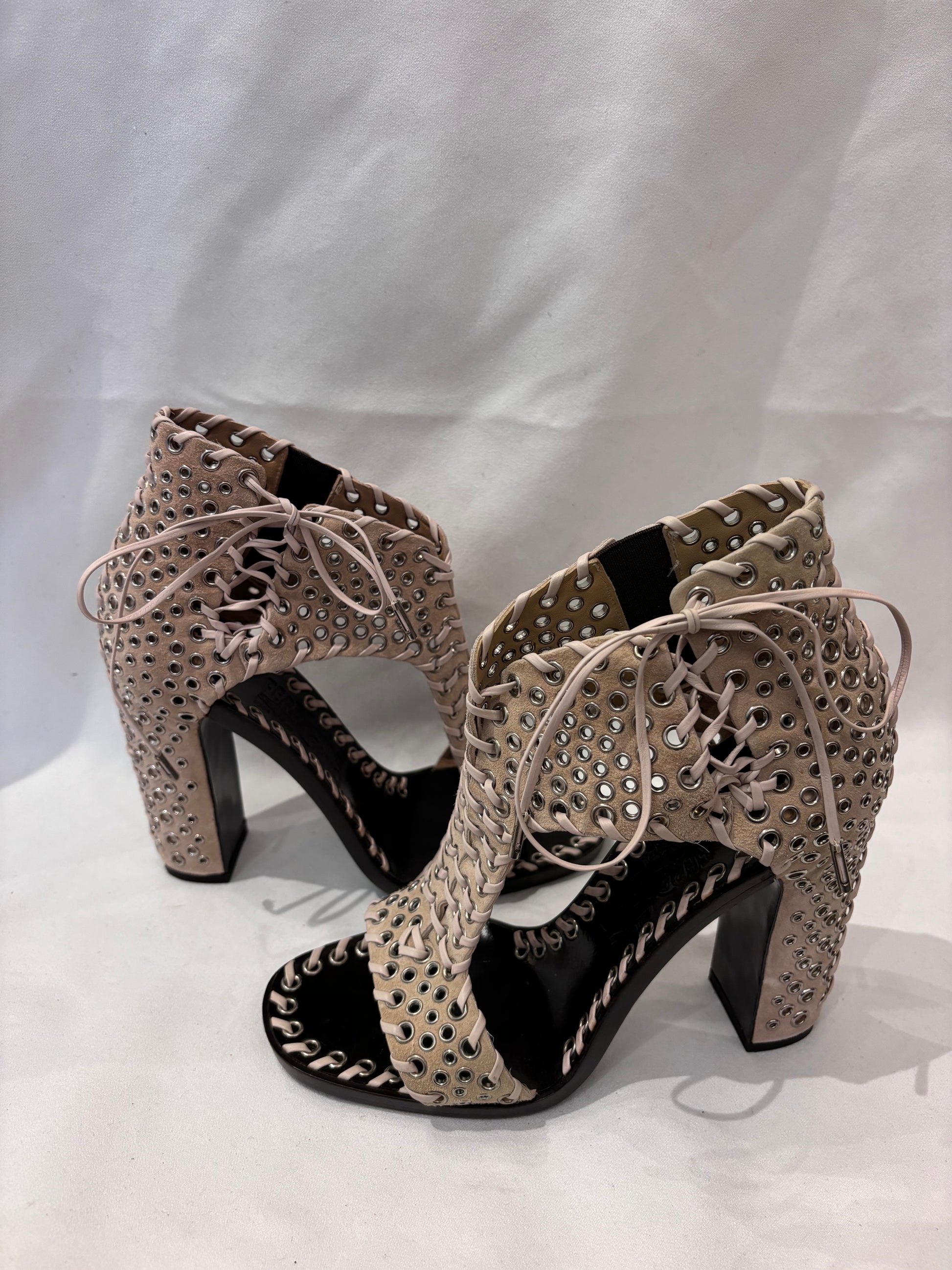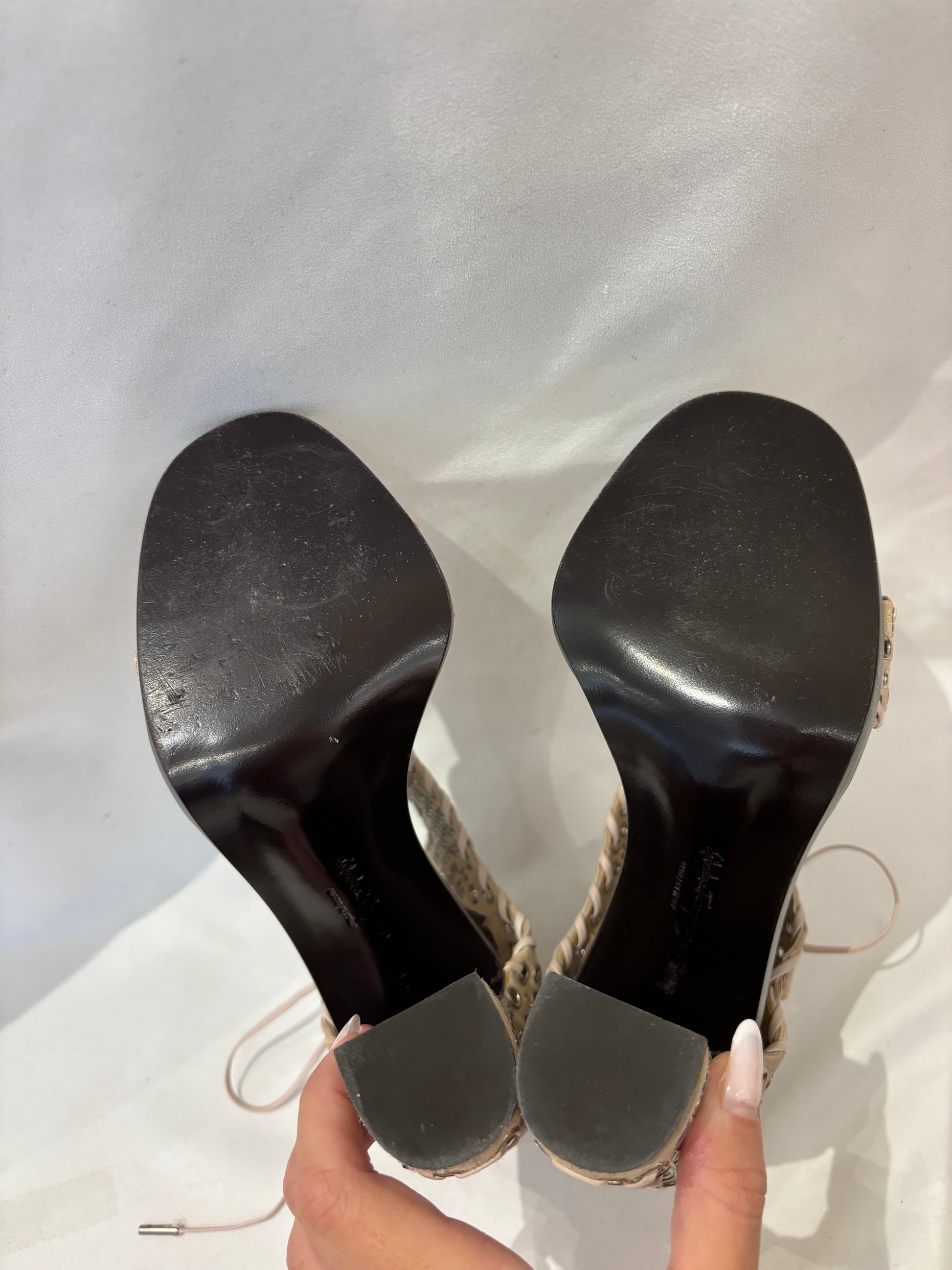 Salvatore Ferragamo Beige Suede Sandals with Silver Grommets Size 37