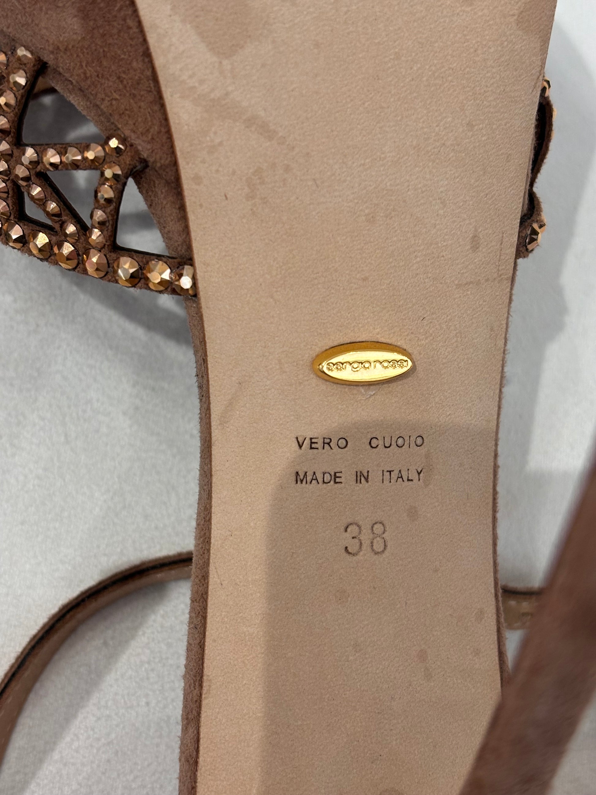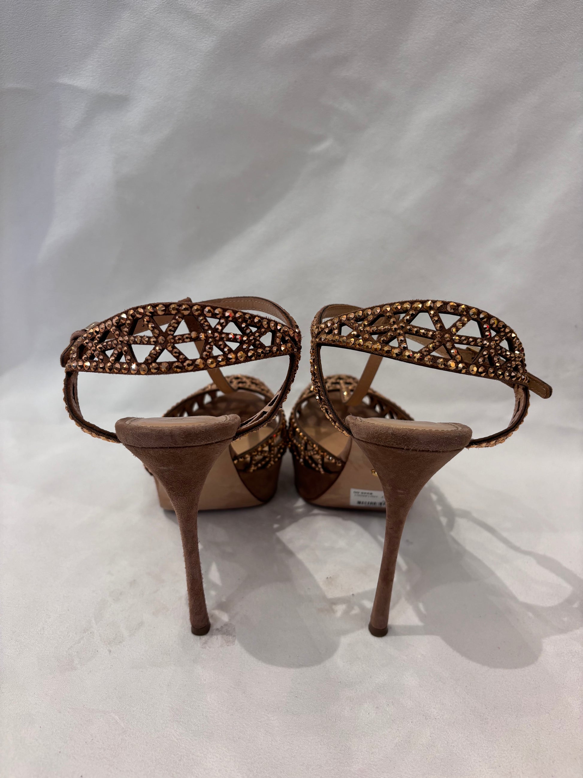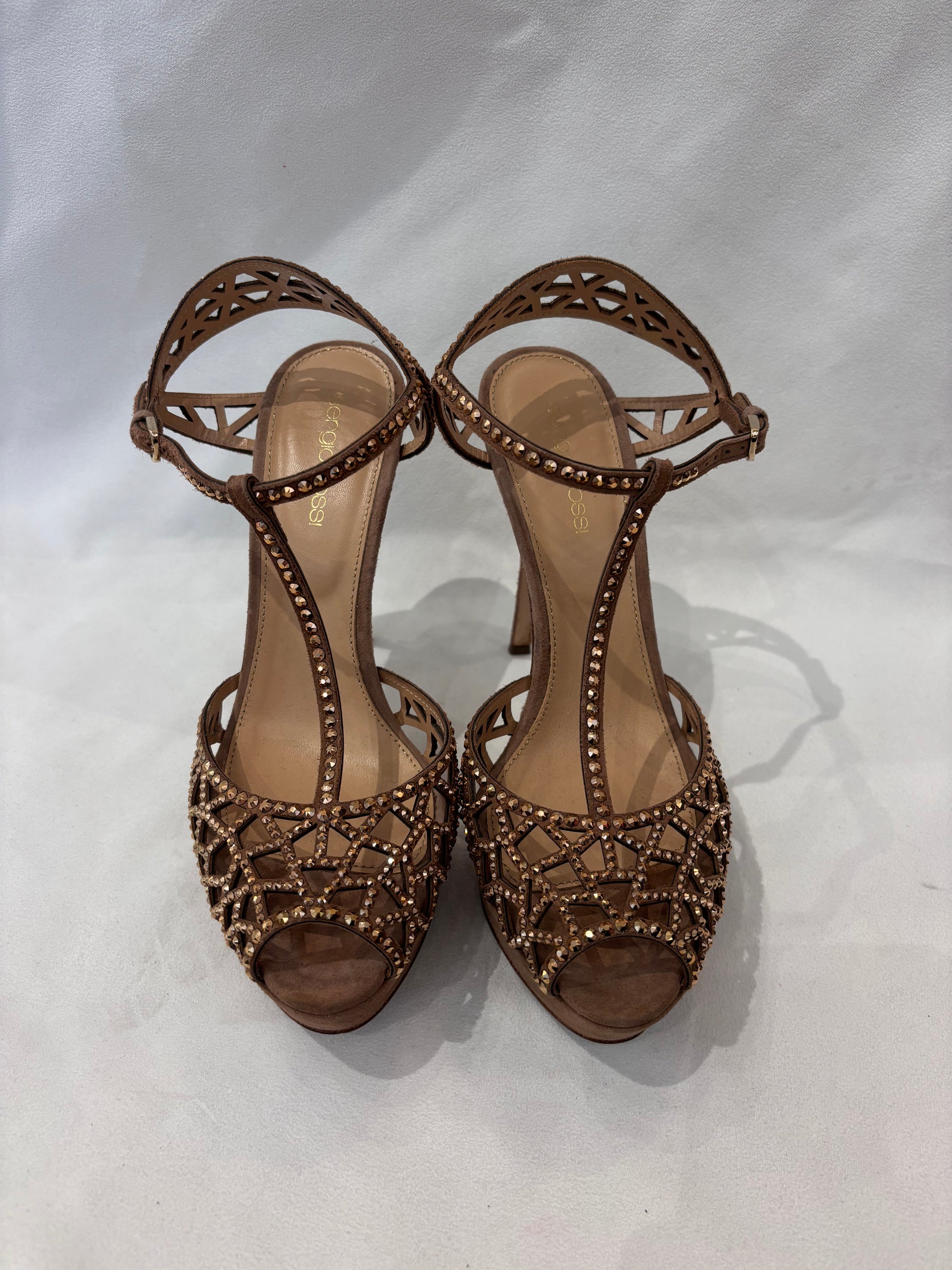 Sergio Rossi Bronze Suede Platform T Strap Pump with Crystals Size 38