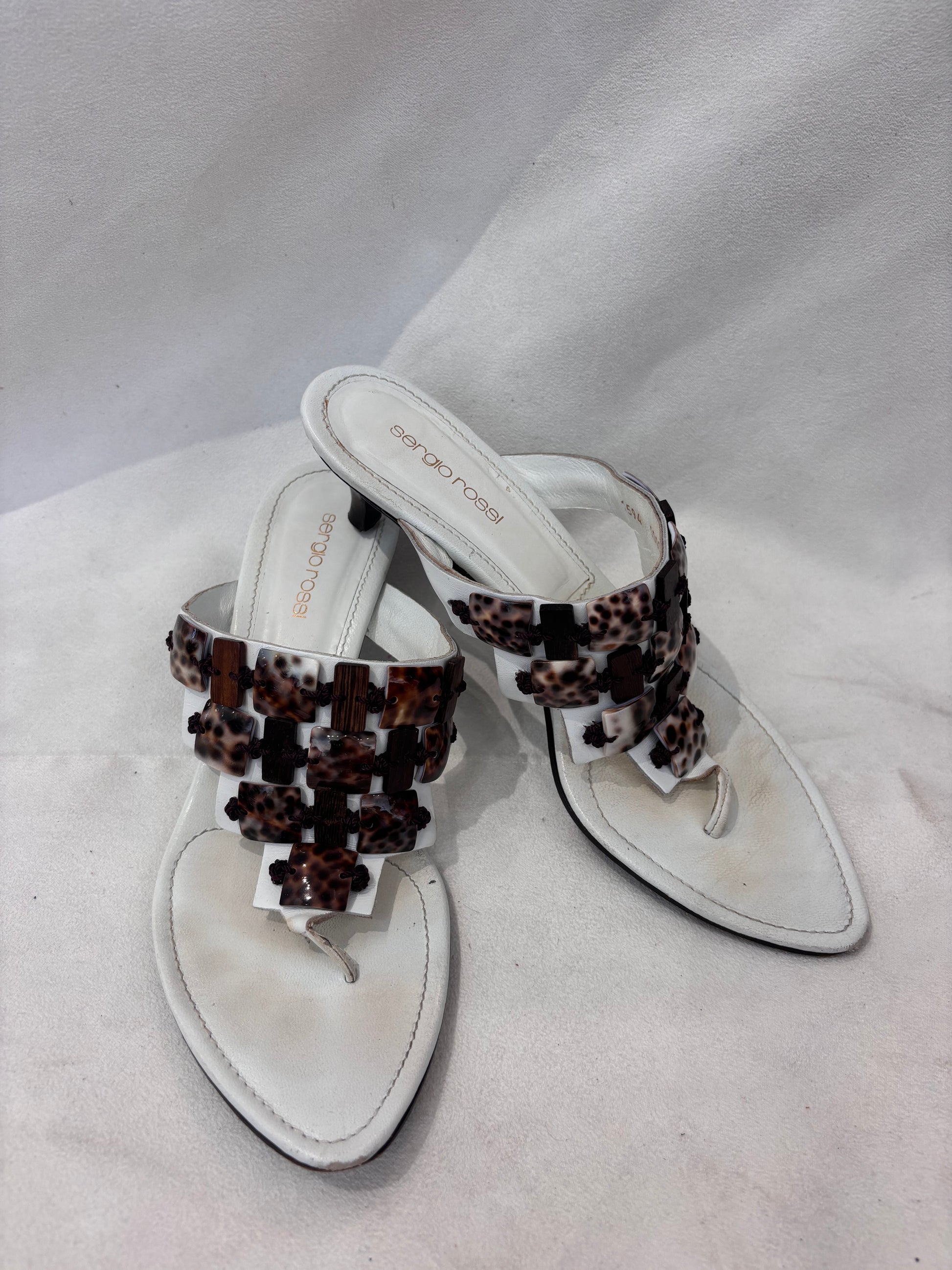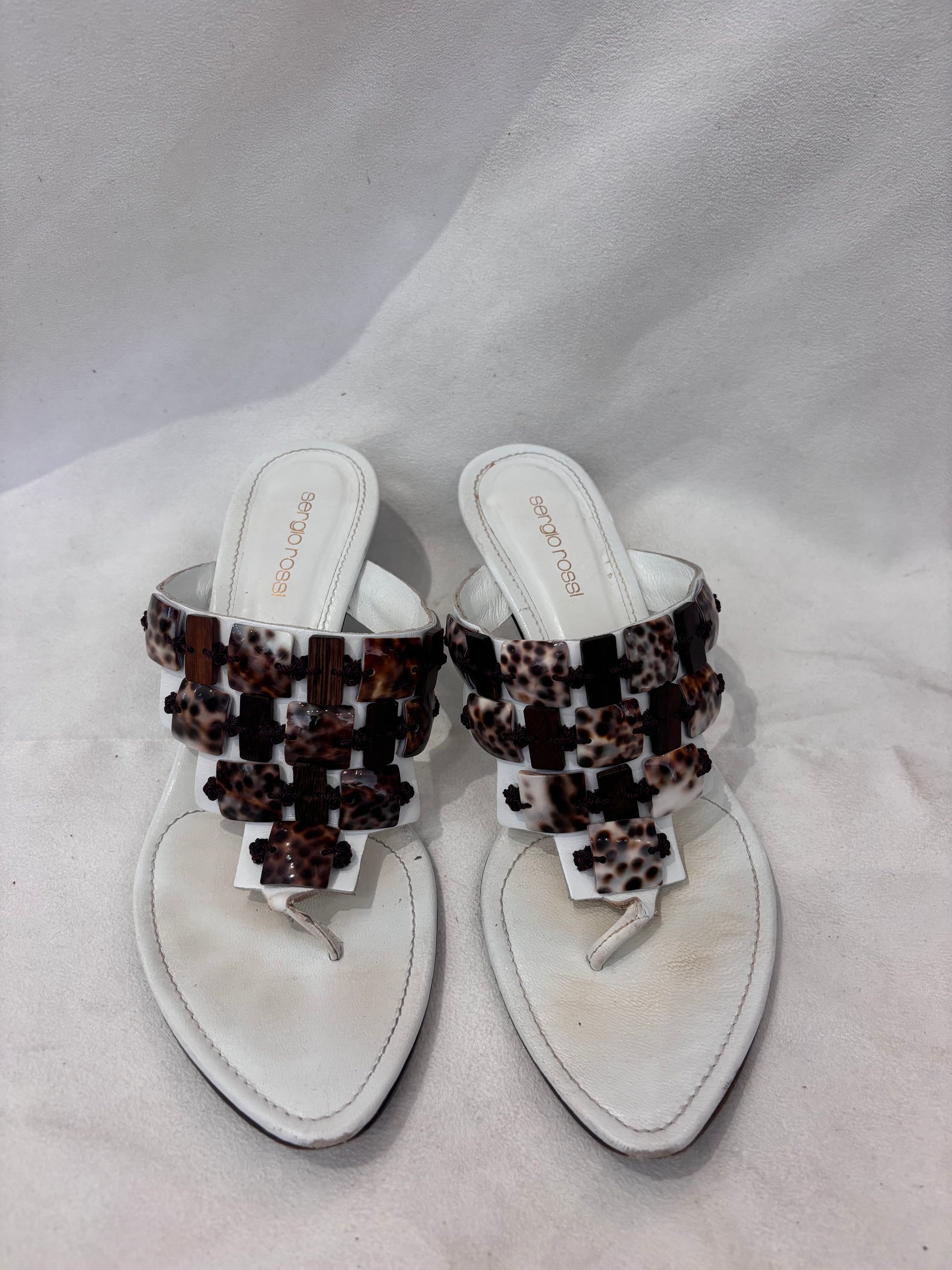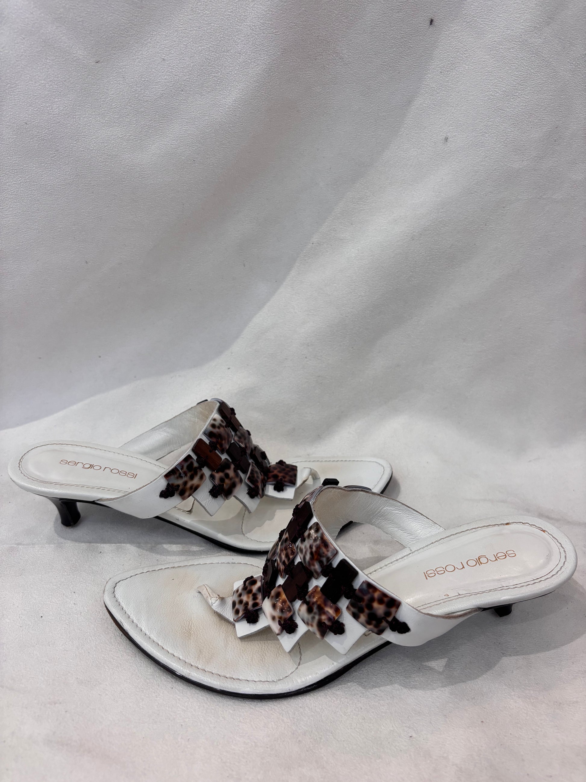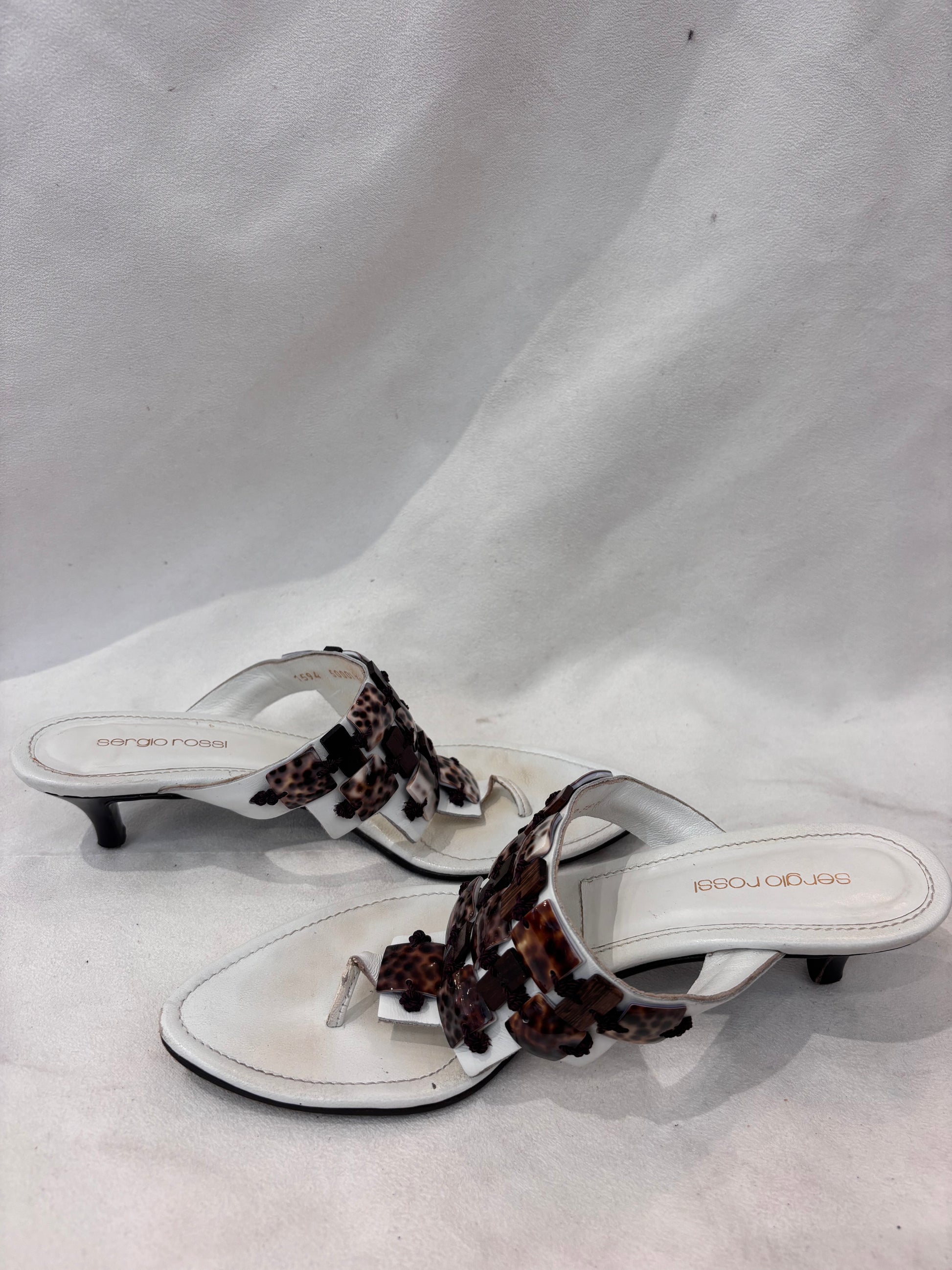 Sergio Rossi White Thong Sandals with Square Tortoiseshell Detail Size 38.5