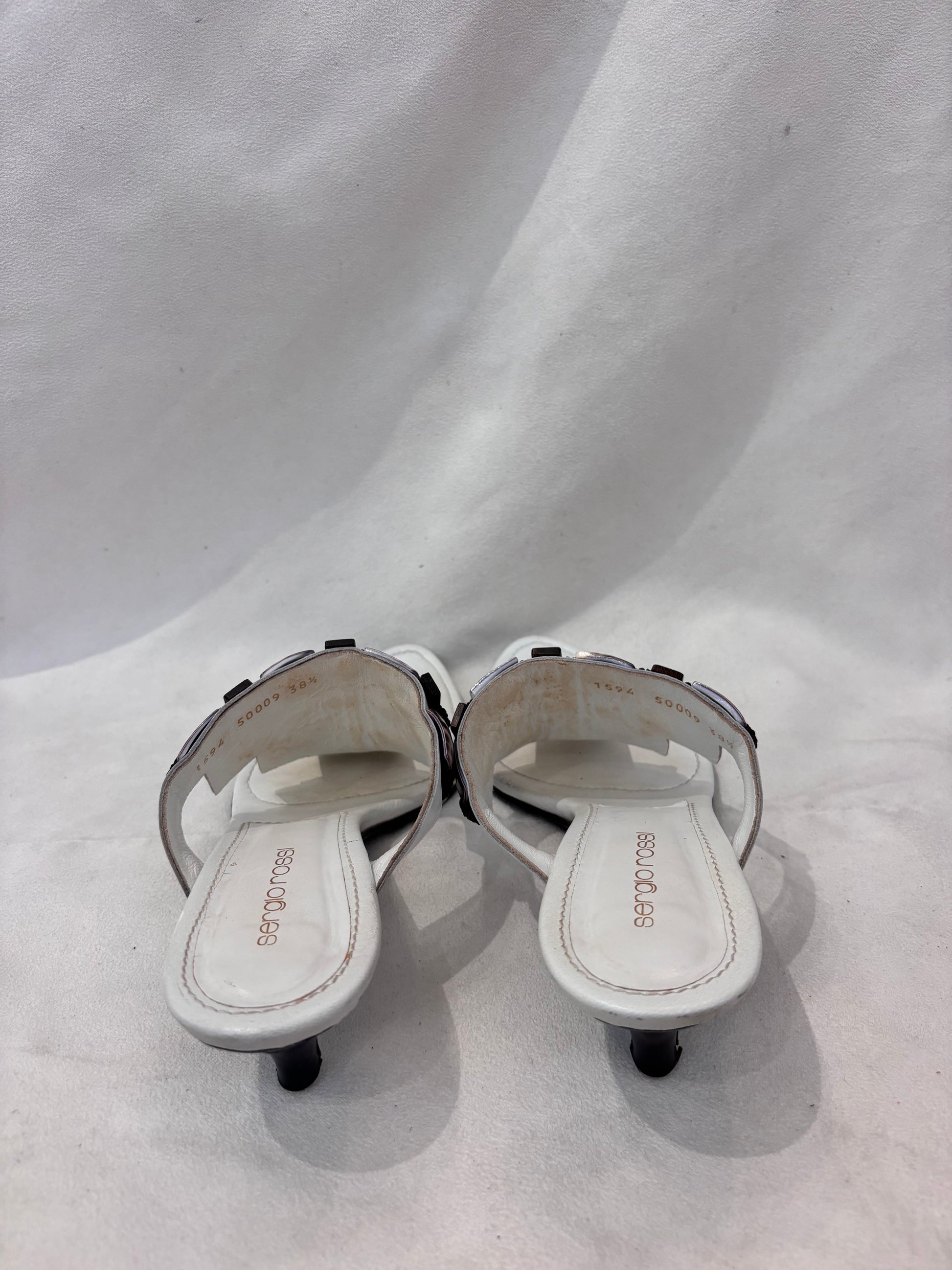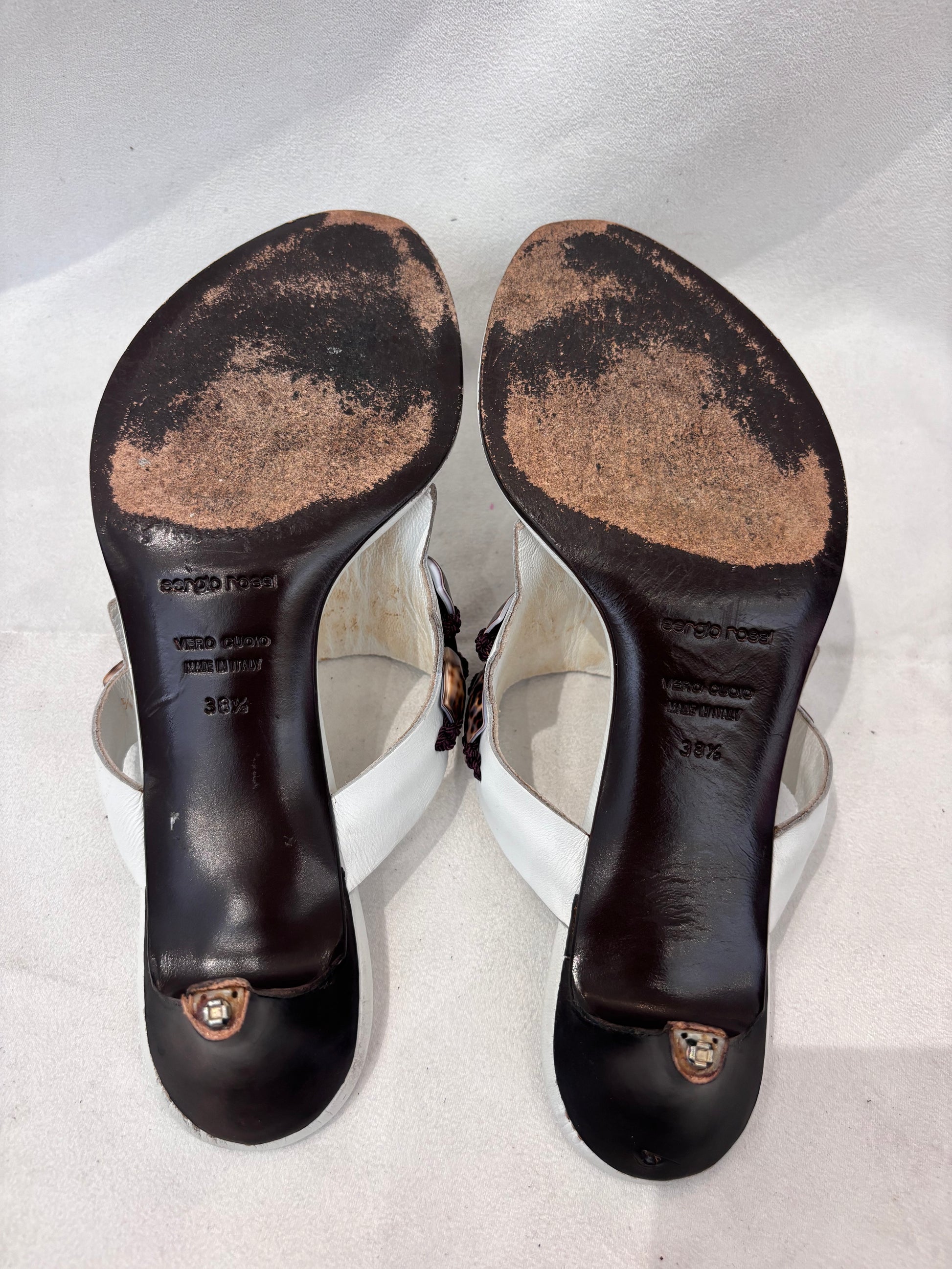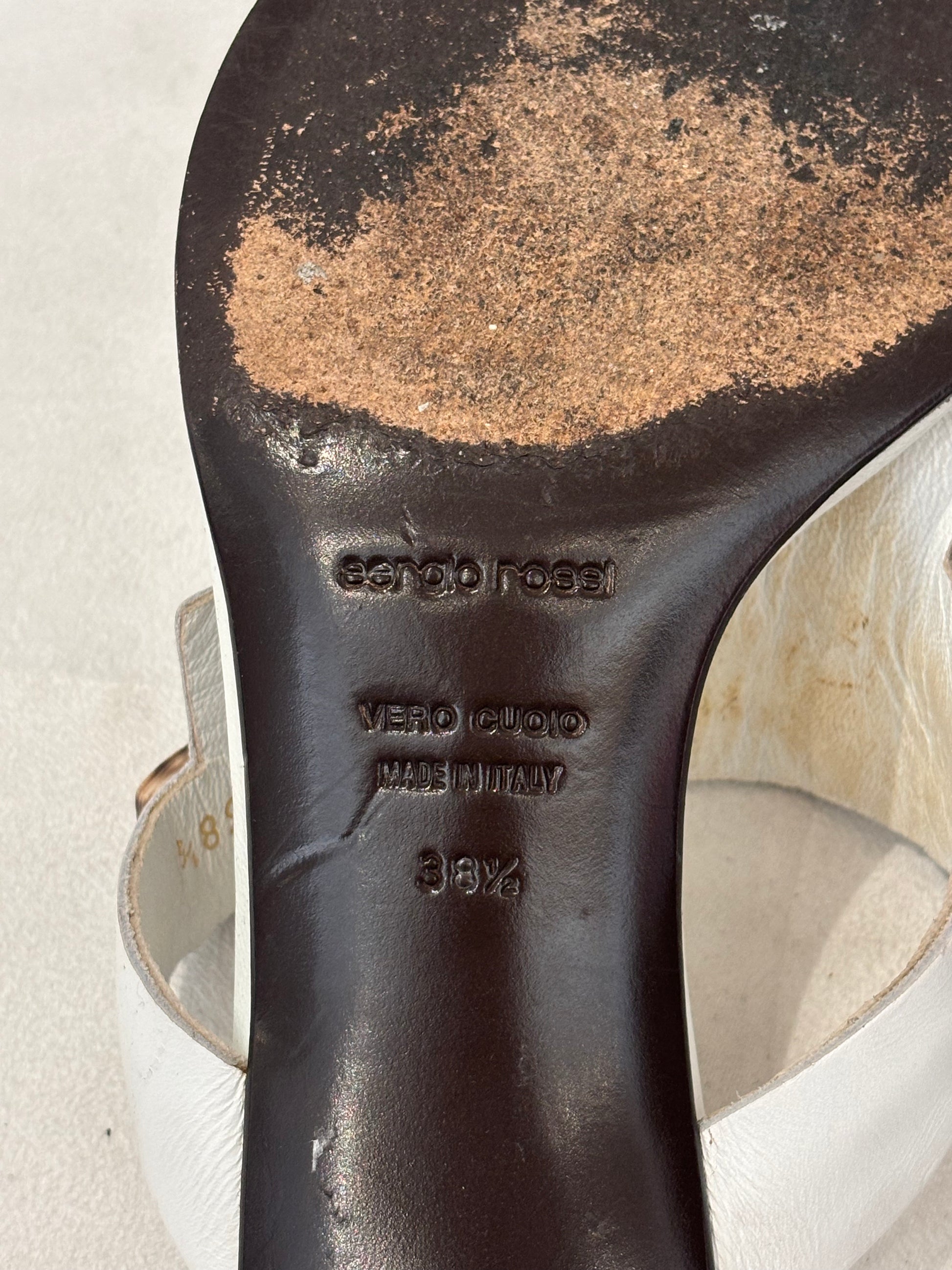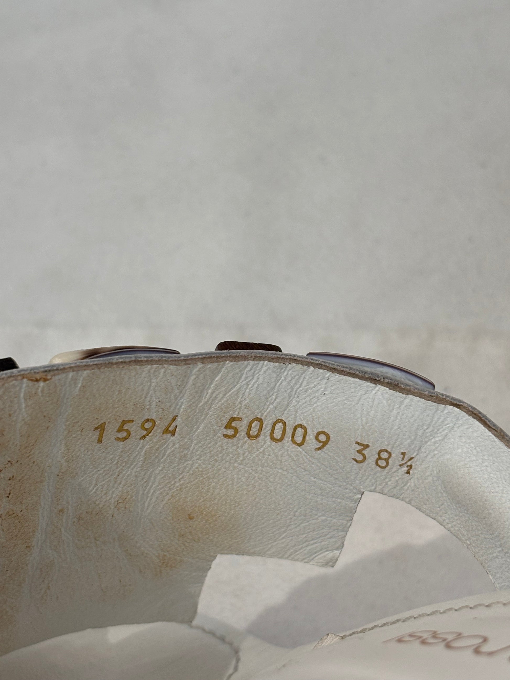 Sergio Rossi White Thong Sandals with Square Tortoiseshell Detail Size 38.5