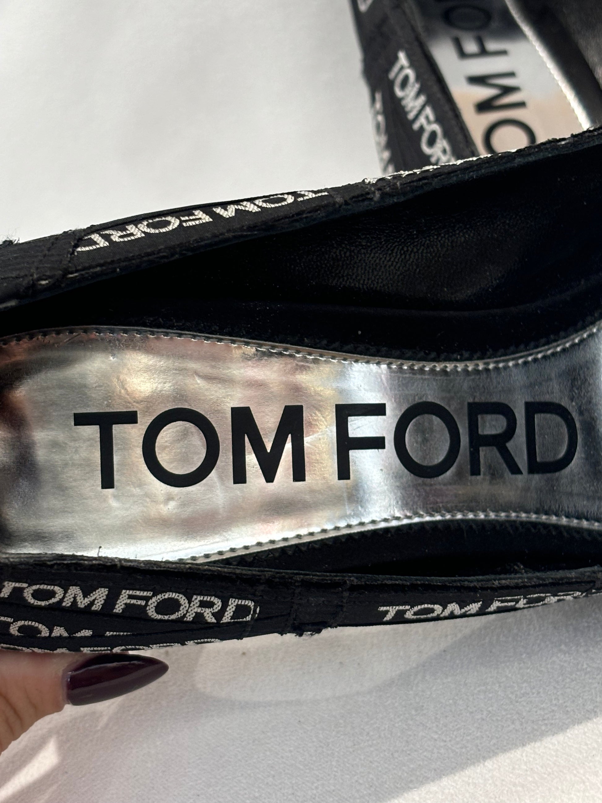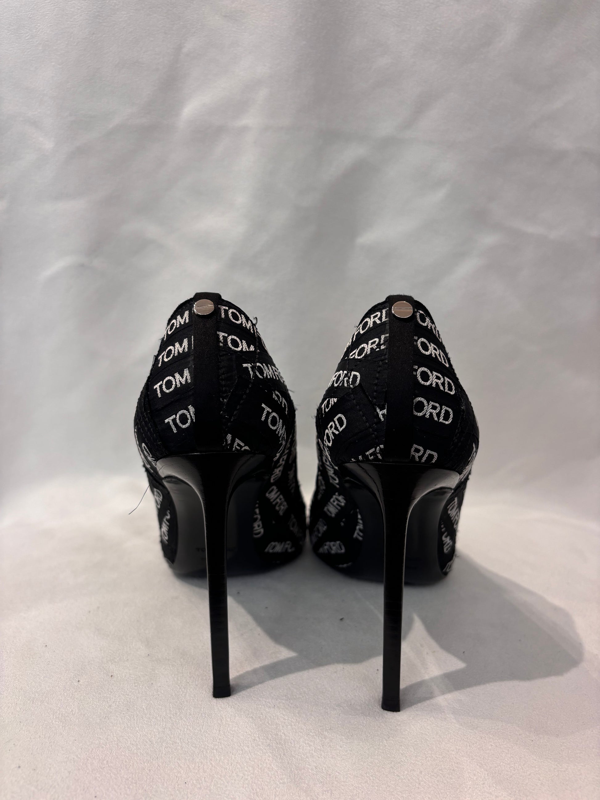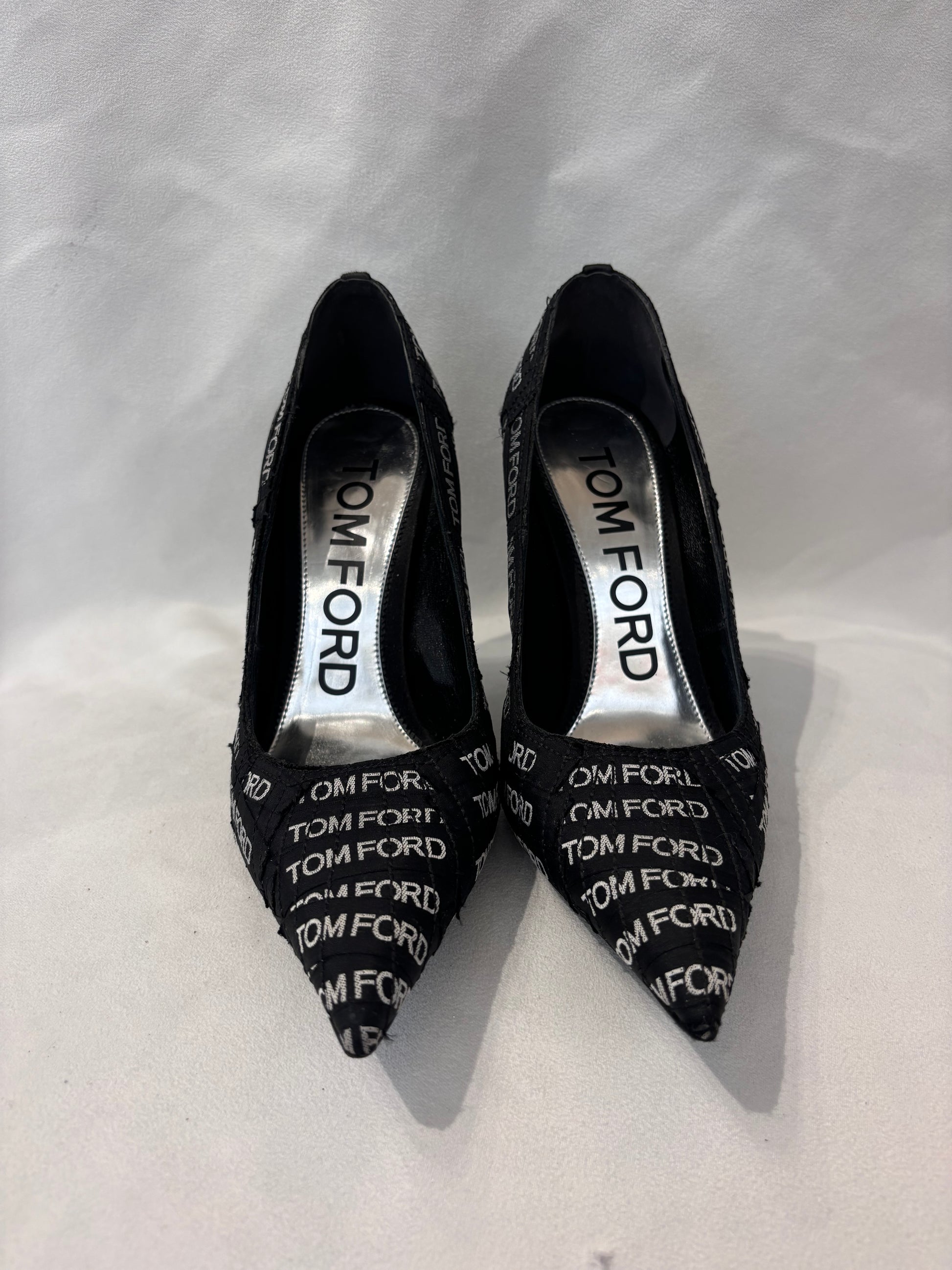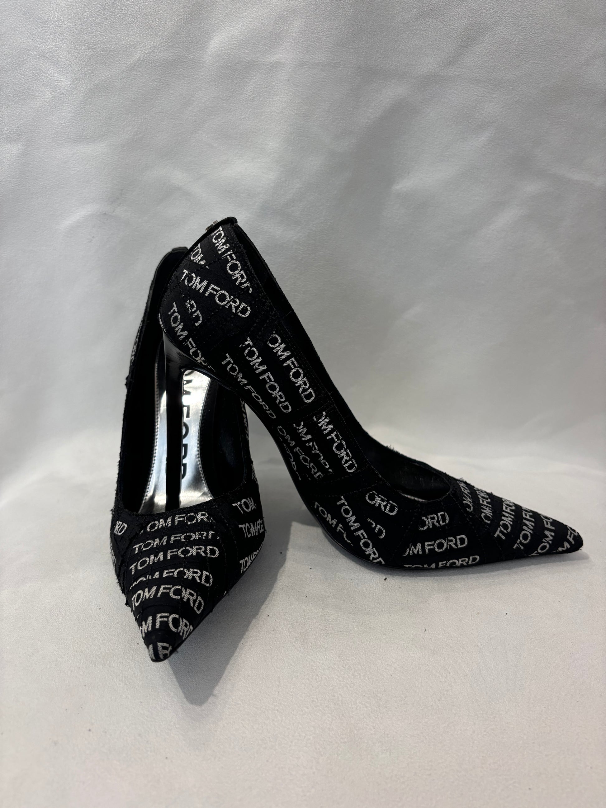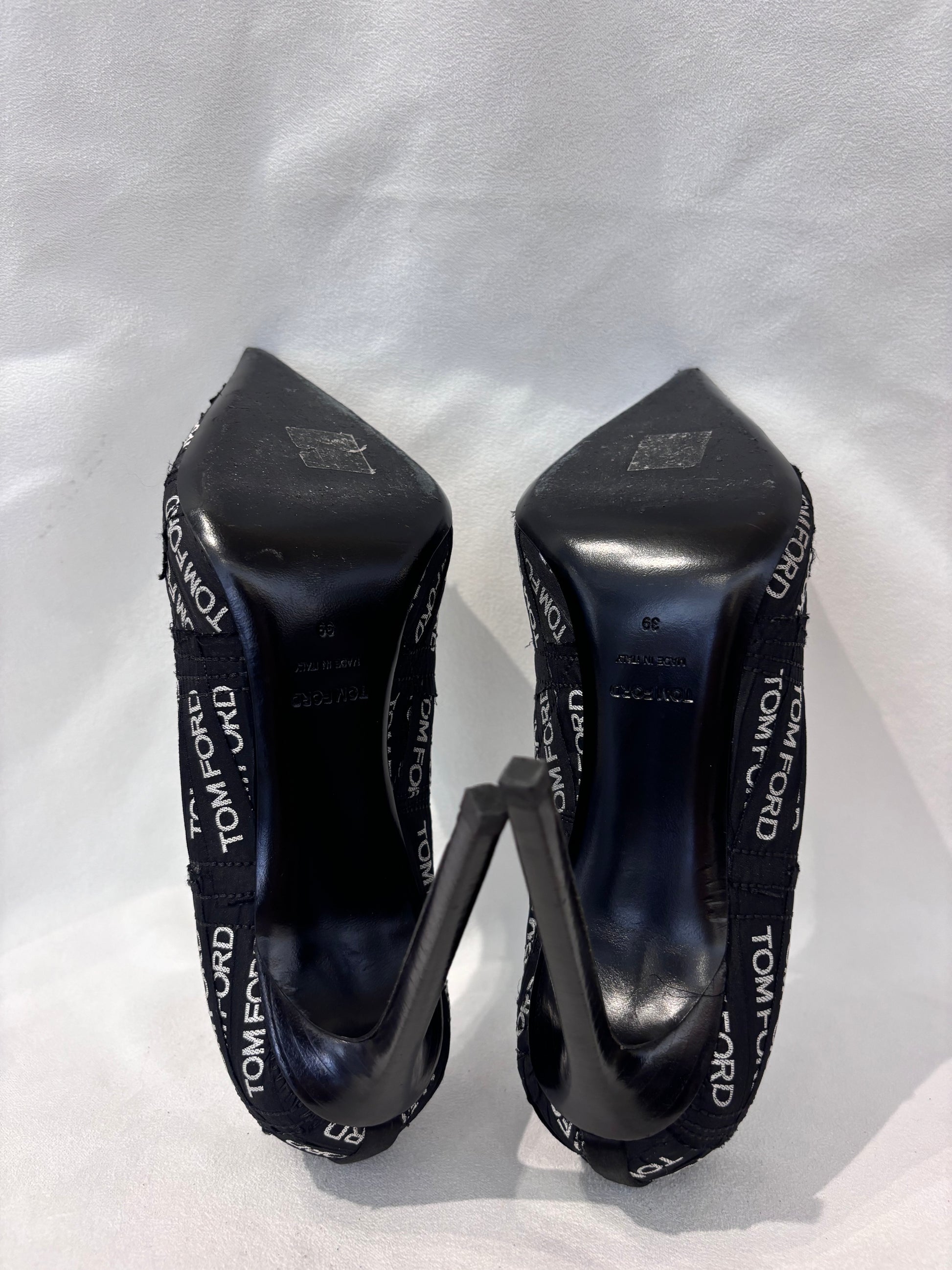 Tom Ford Black/White Logo Pointy Pump Size 39