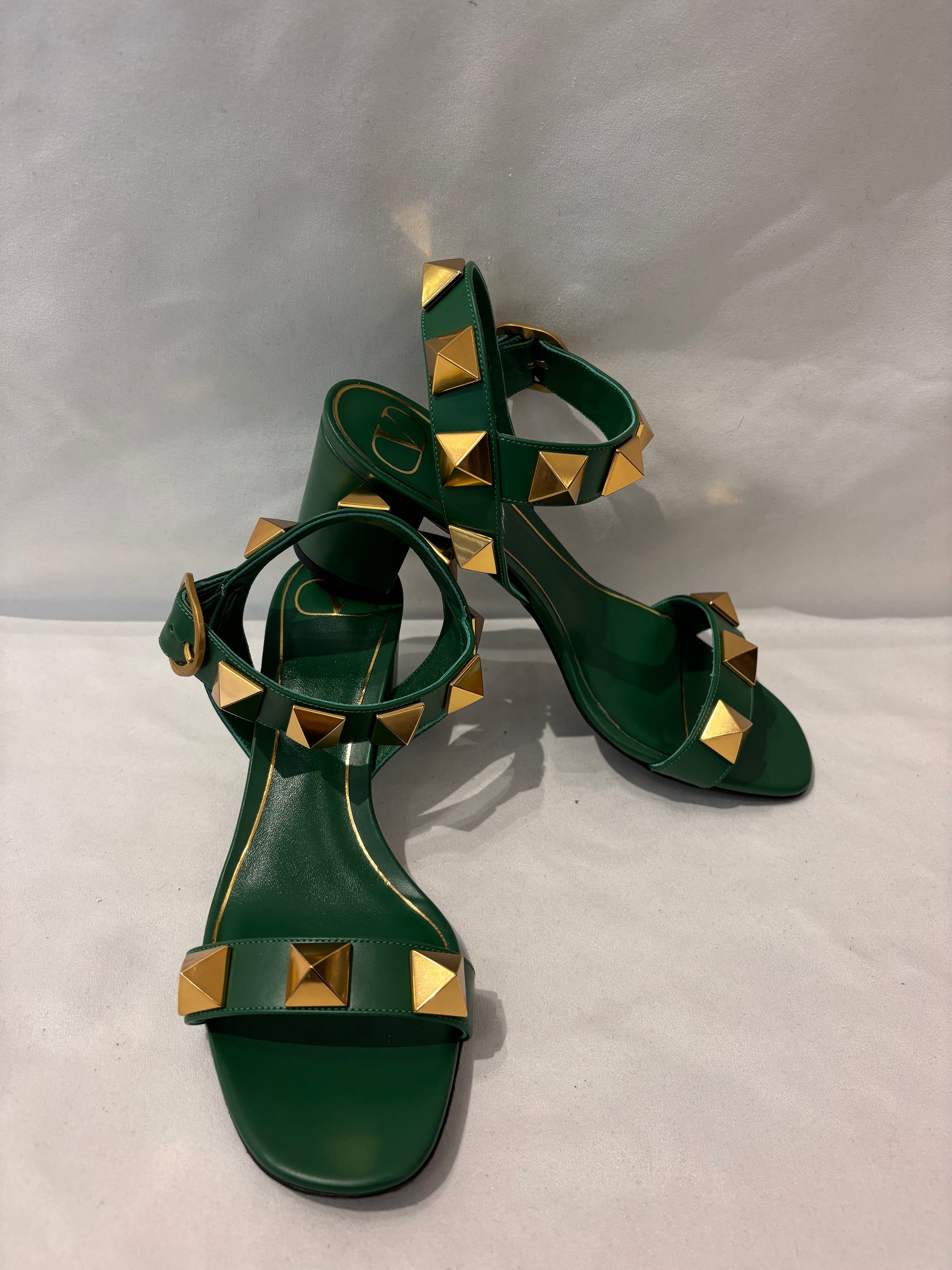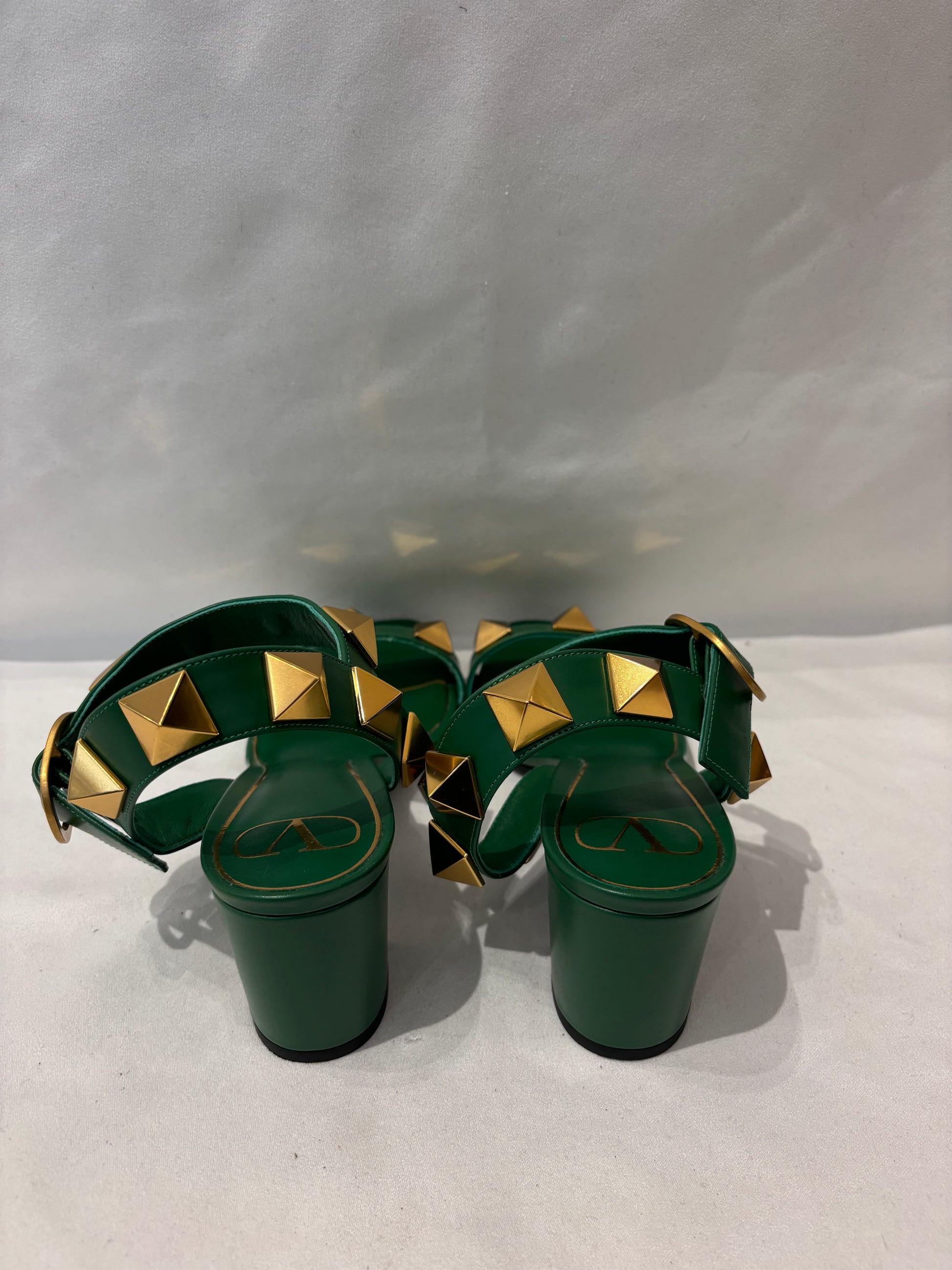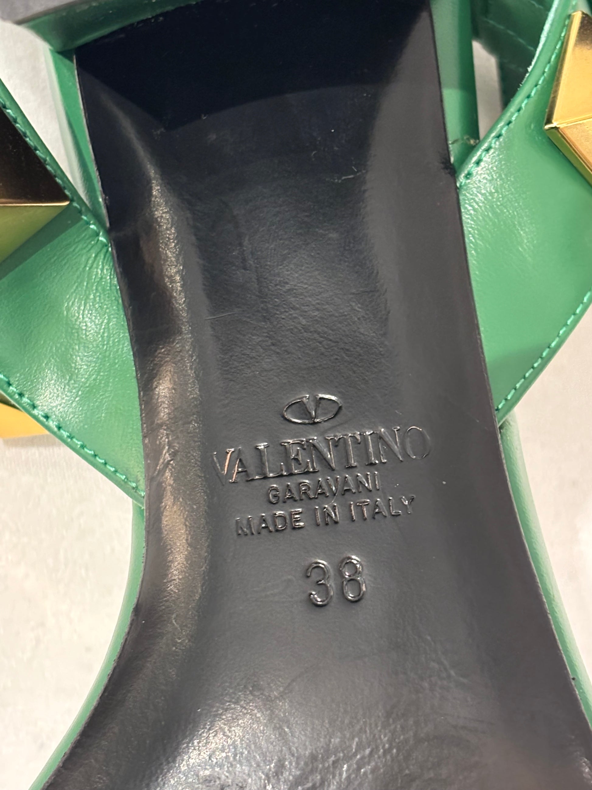 Valentino Green Rockstud Sandals with Ankle Strap Size 38