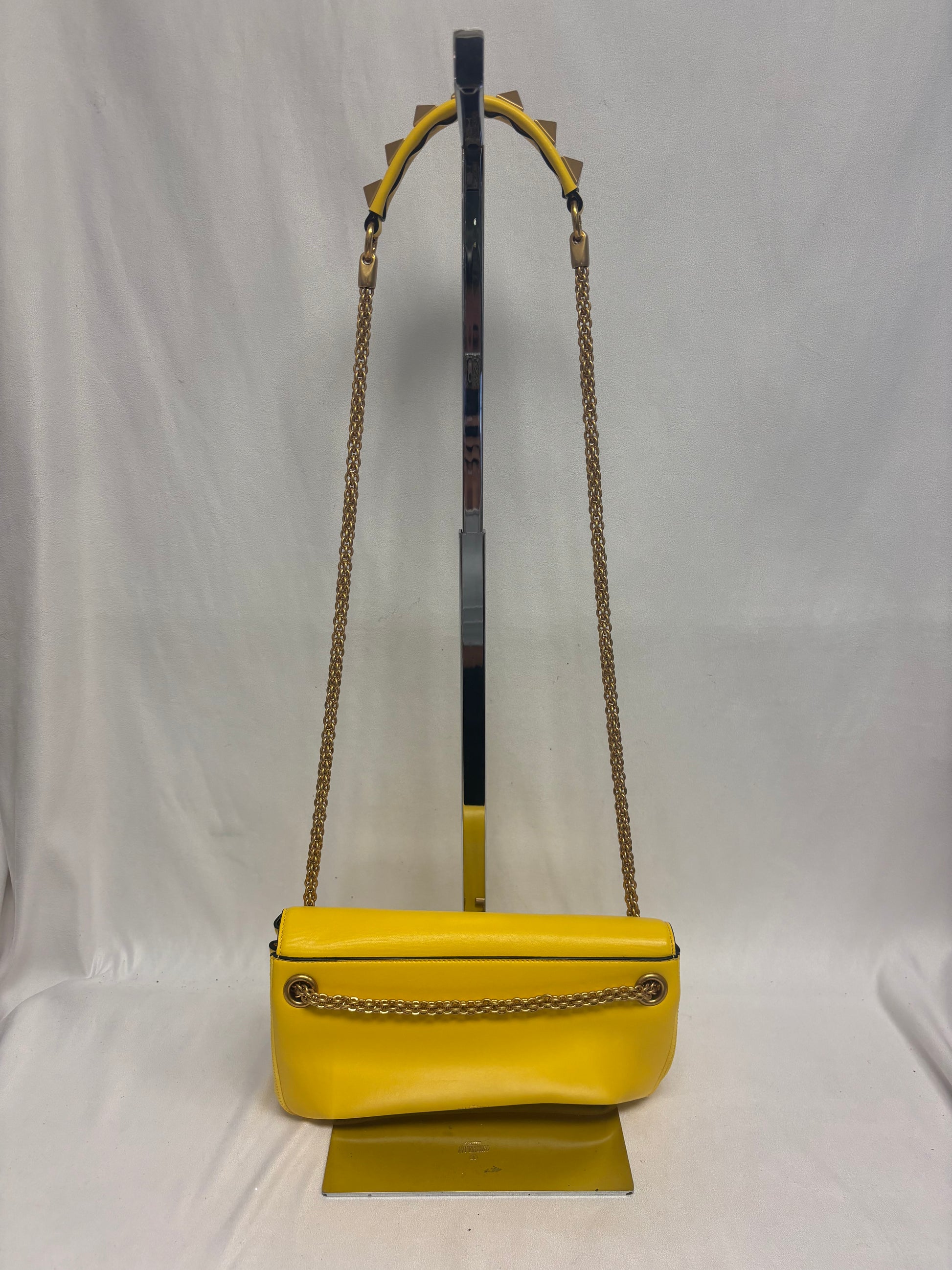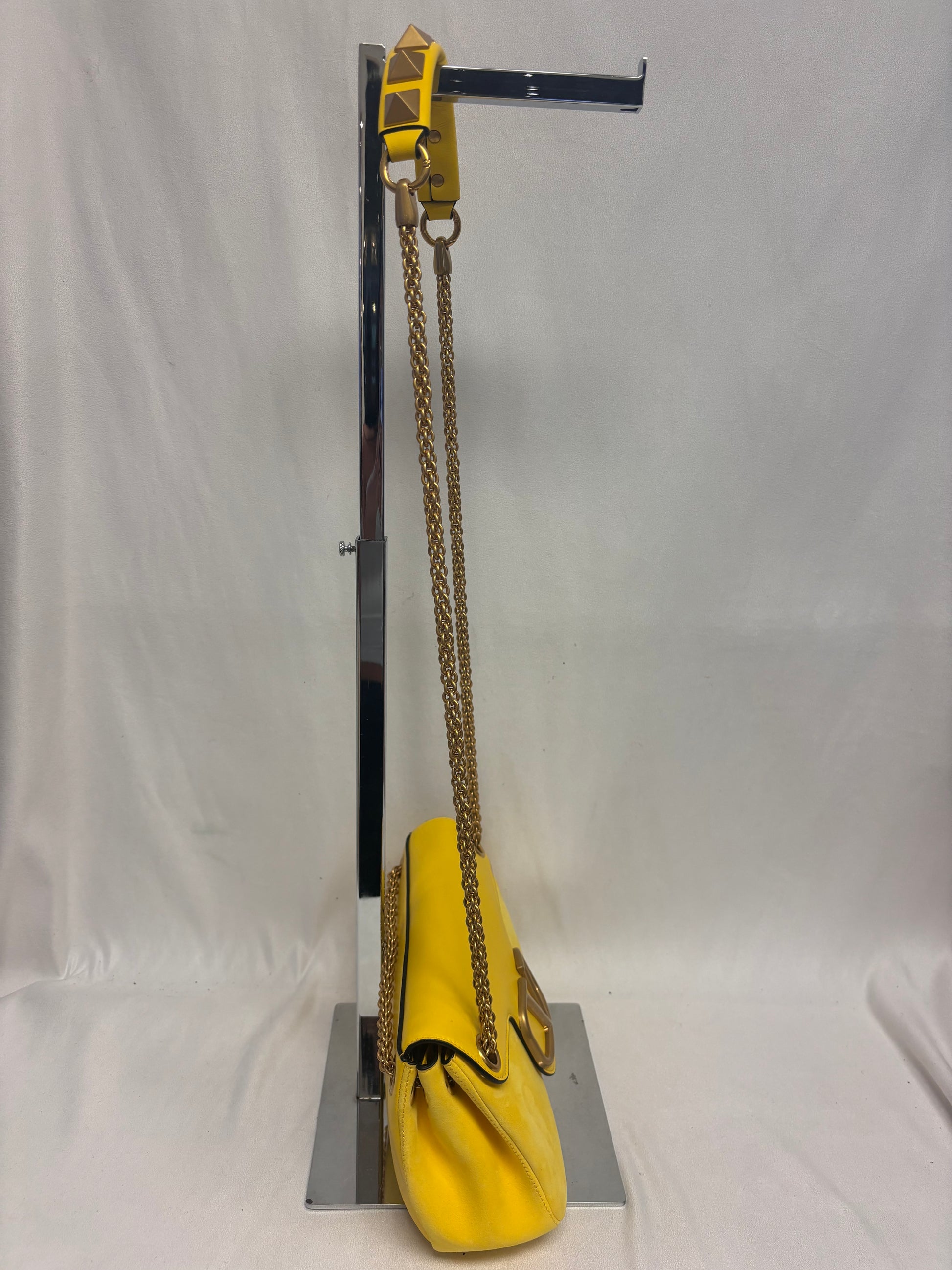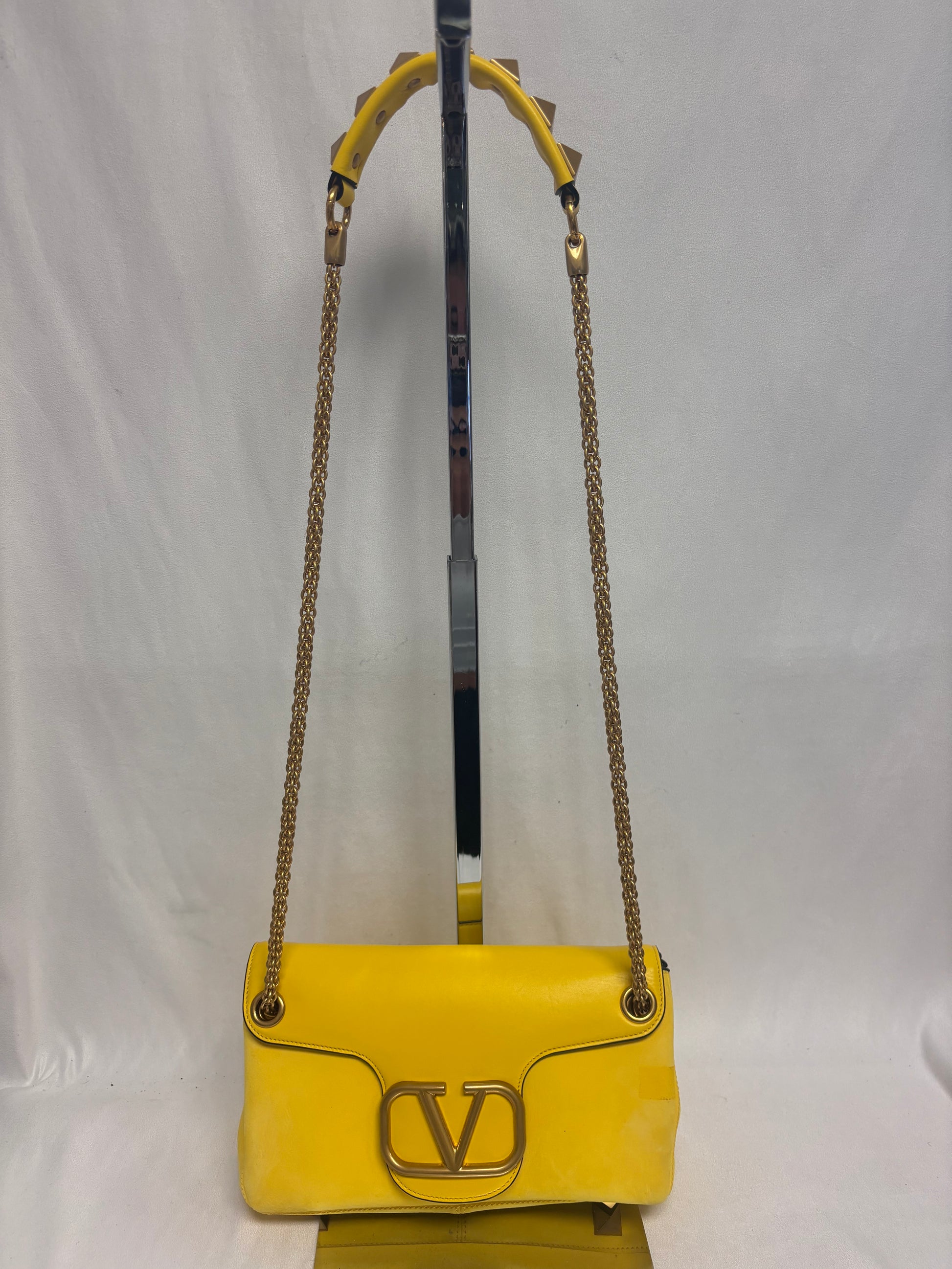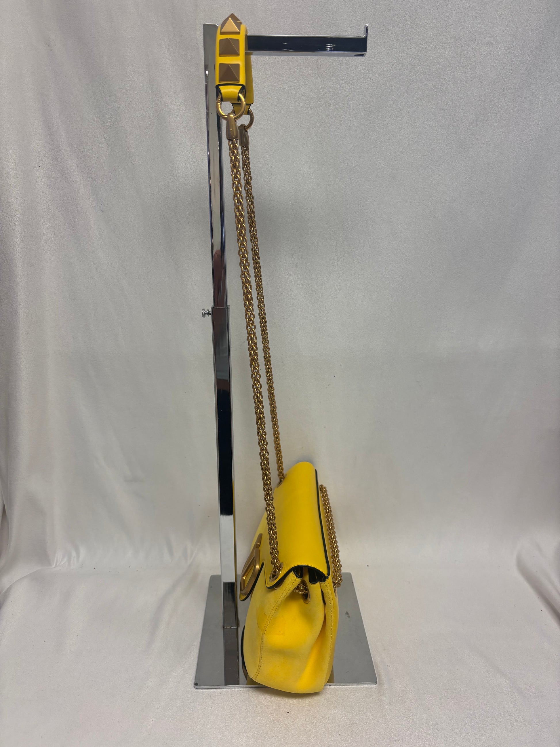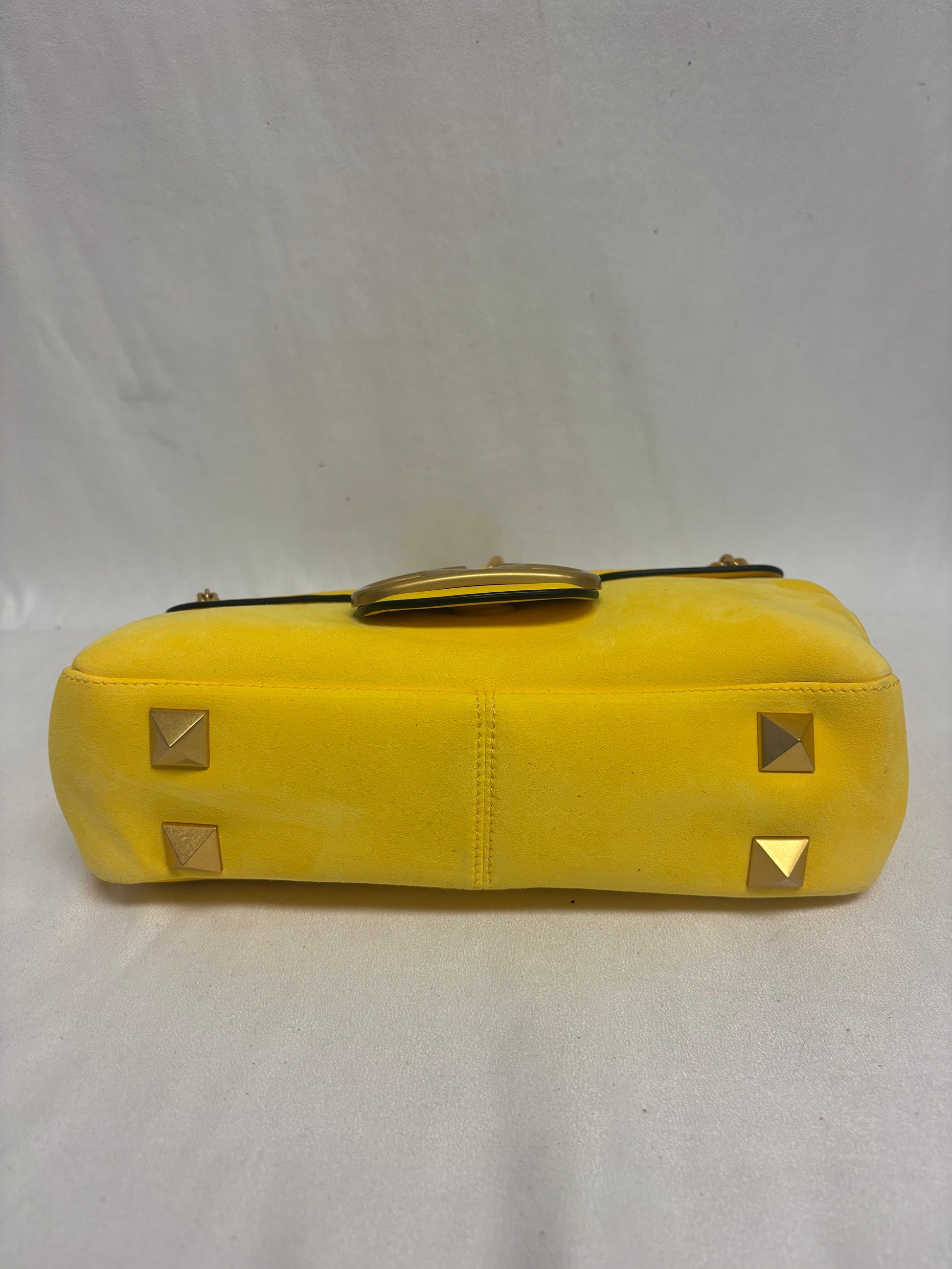 Valentino Yellow Suede V Logo Flap Bag with Brushed Gold