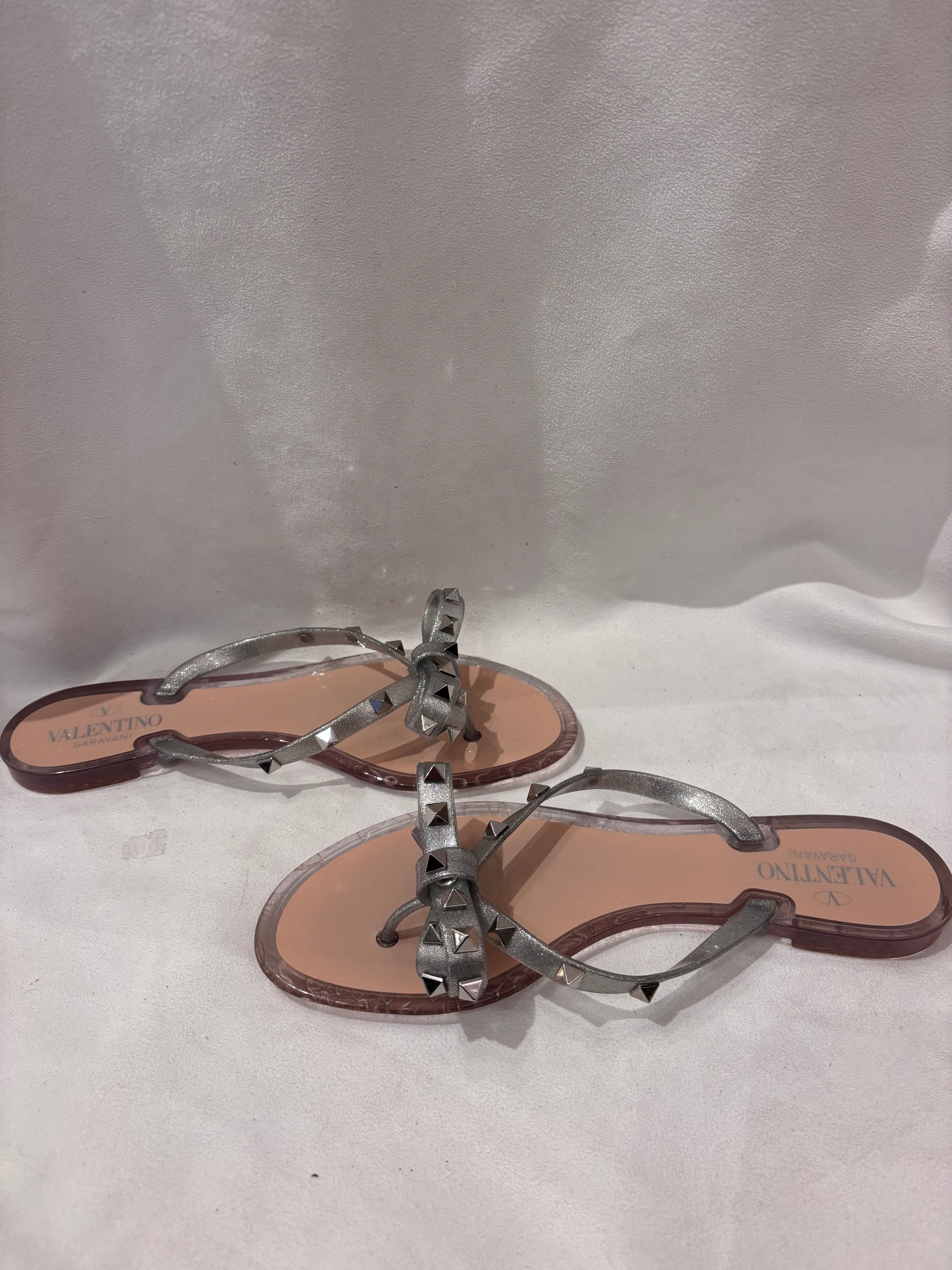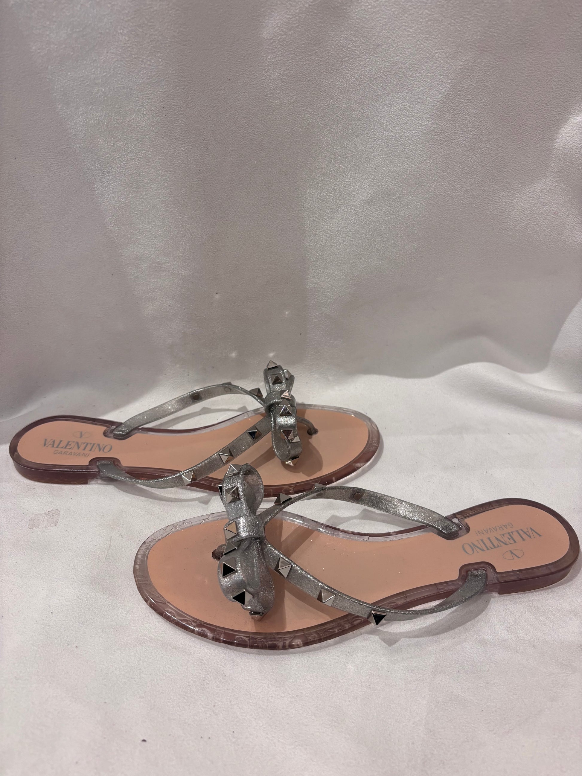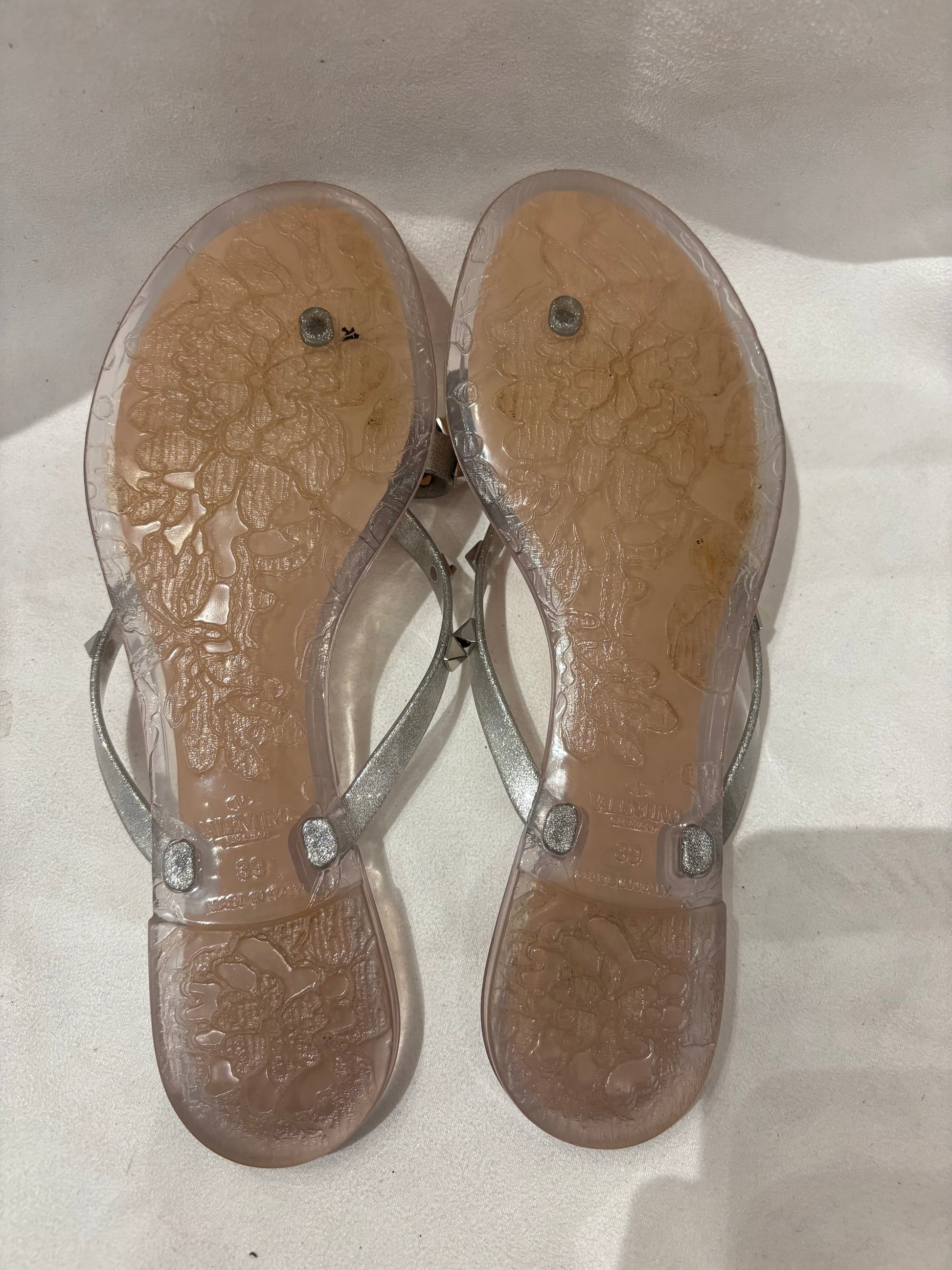Valentino Silver Thong Rockstud Jelly Flats Size 39