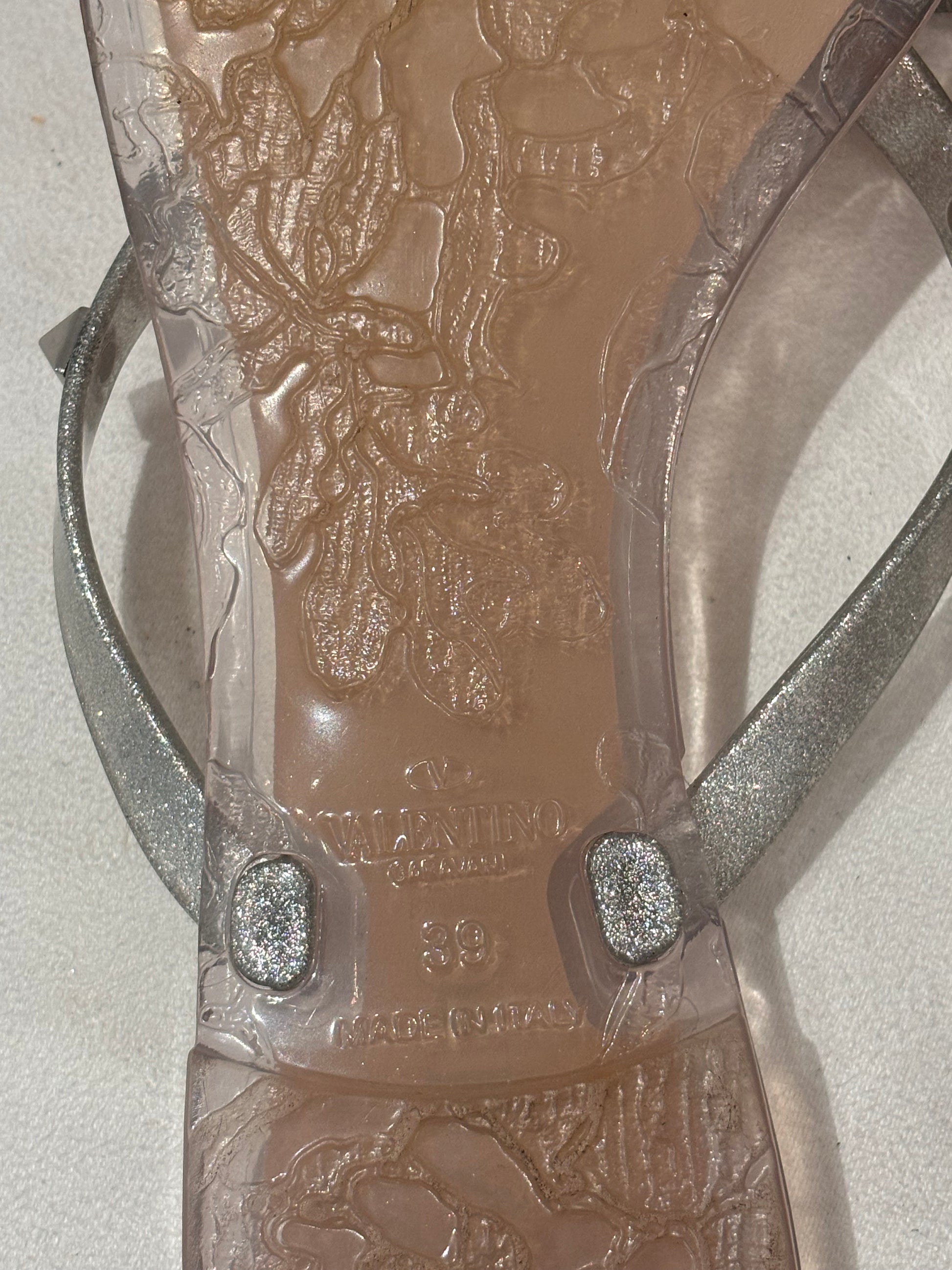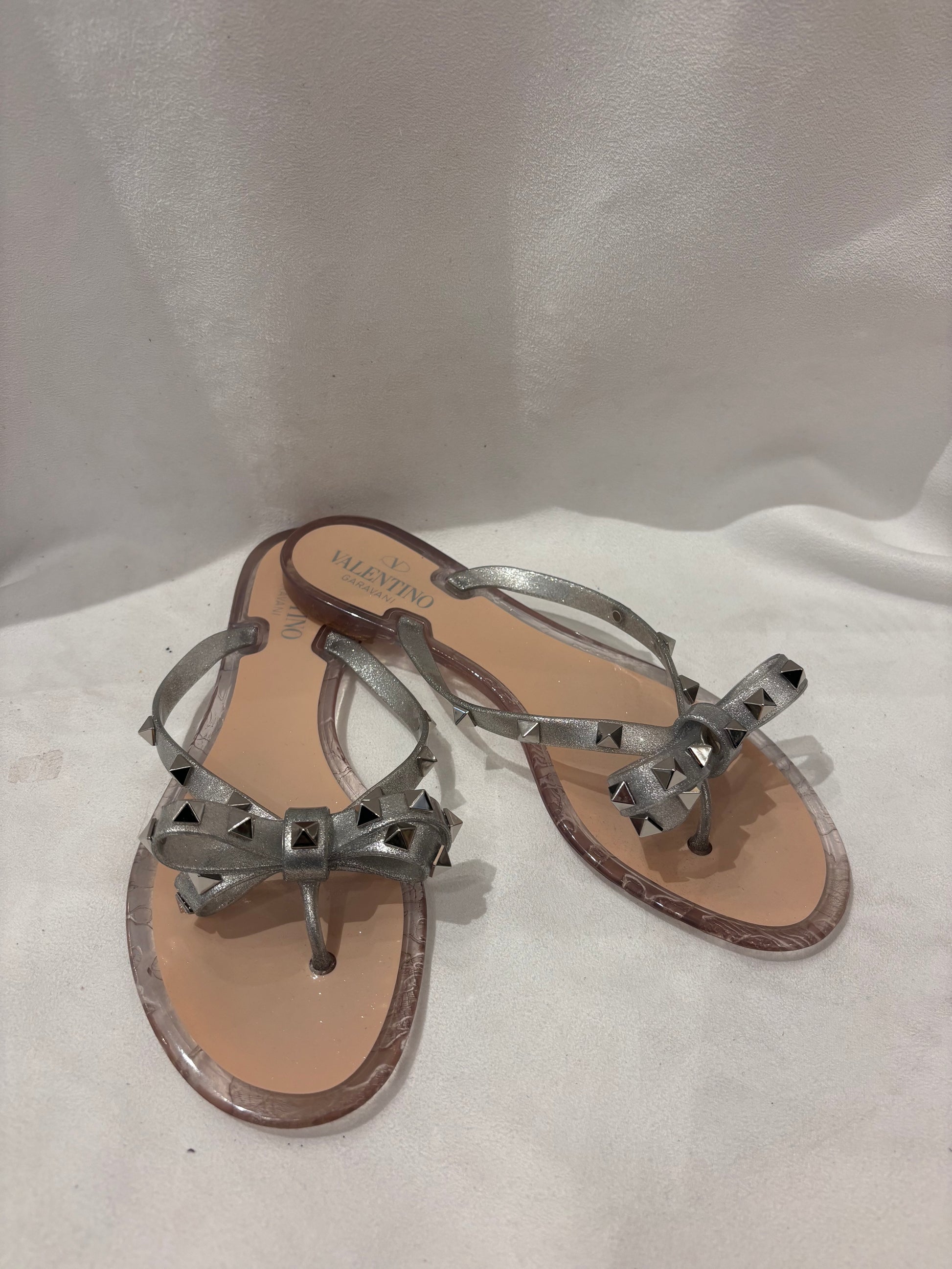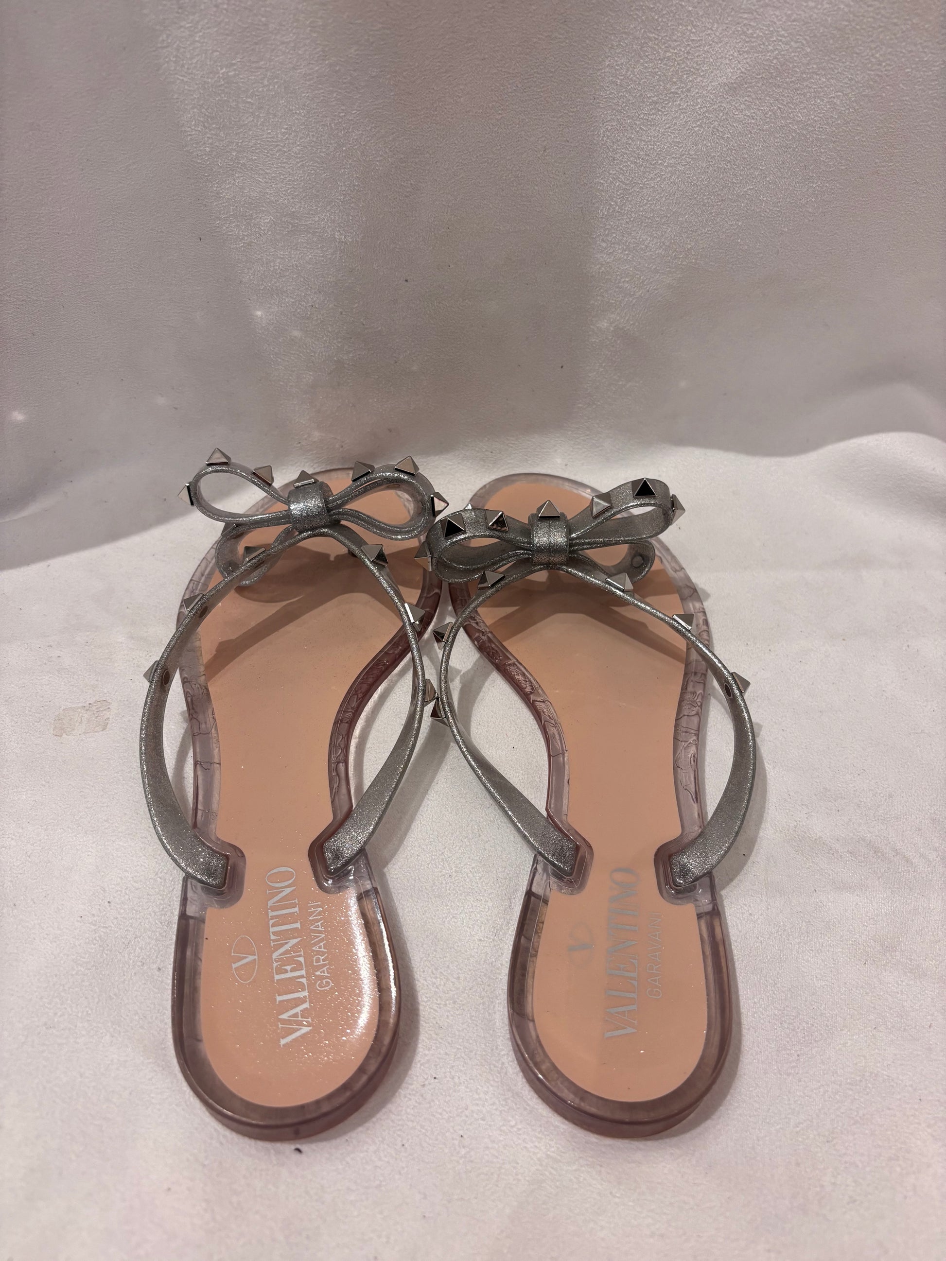 Valentino Silver Thong Rockstud Jelly Flats Size 39