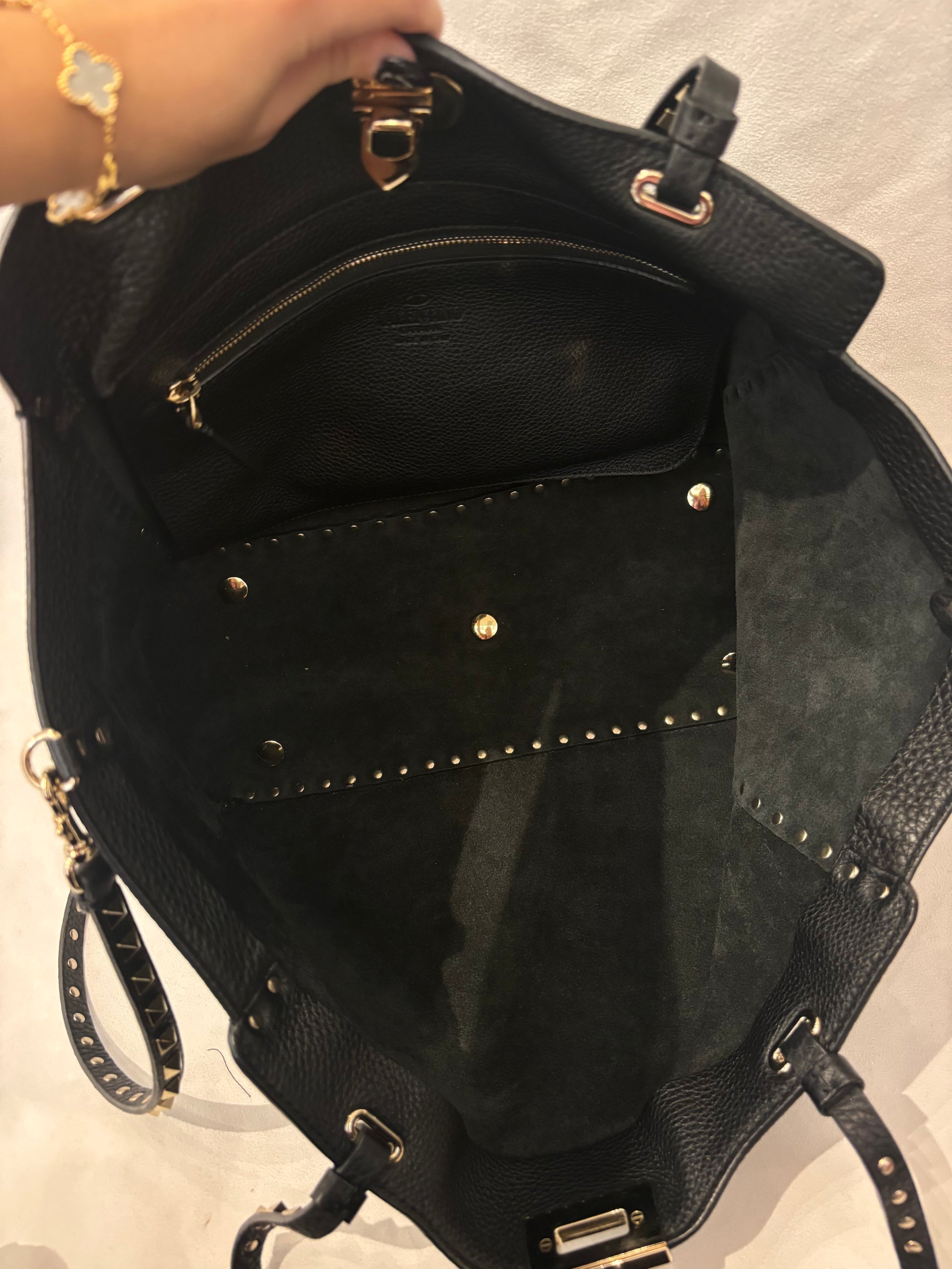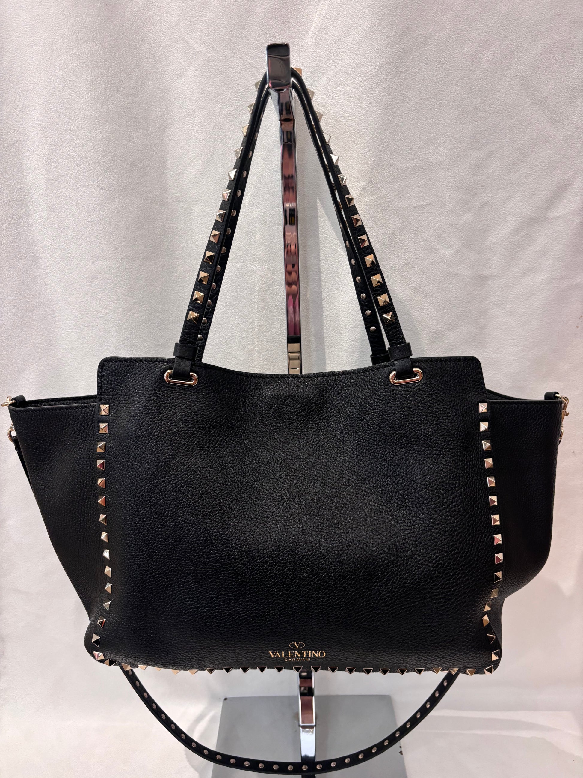 Valentino Black Rockstud Tote with Detachable Shoulder Strap